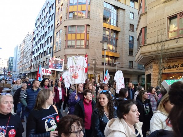 O persoal das residencias da terceira idade privadas continuou hoxe en Pontevedra coa intensa campaña que está a desenvolver ao longo do país para dignificar as súas condicións laborais. Unha nova manifestación convocada pola CIG-Servizos percorreu hoxe as rúas da cidade ao berro de “Non somos escravas, somos traballadoras” en demanda de melloras laborais reais no convenio colectivo.