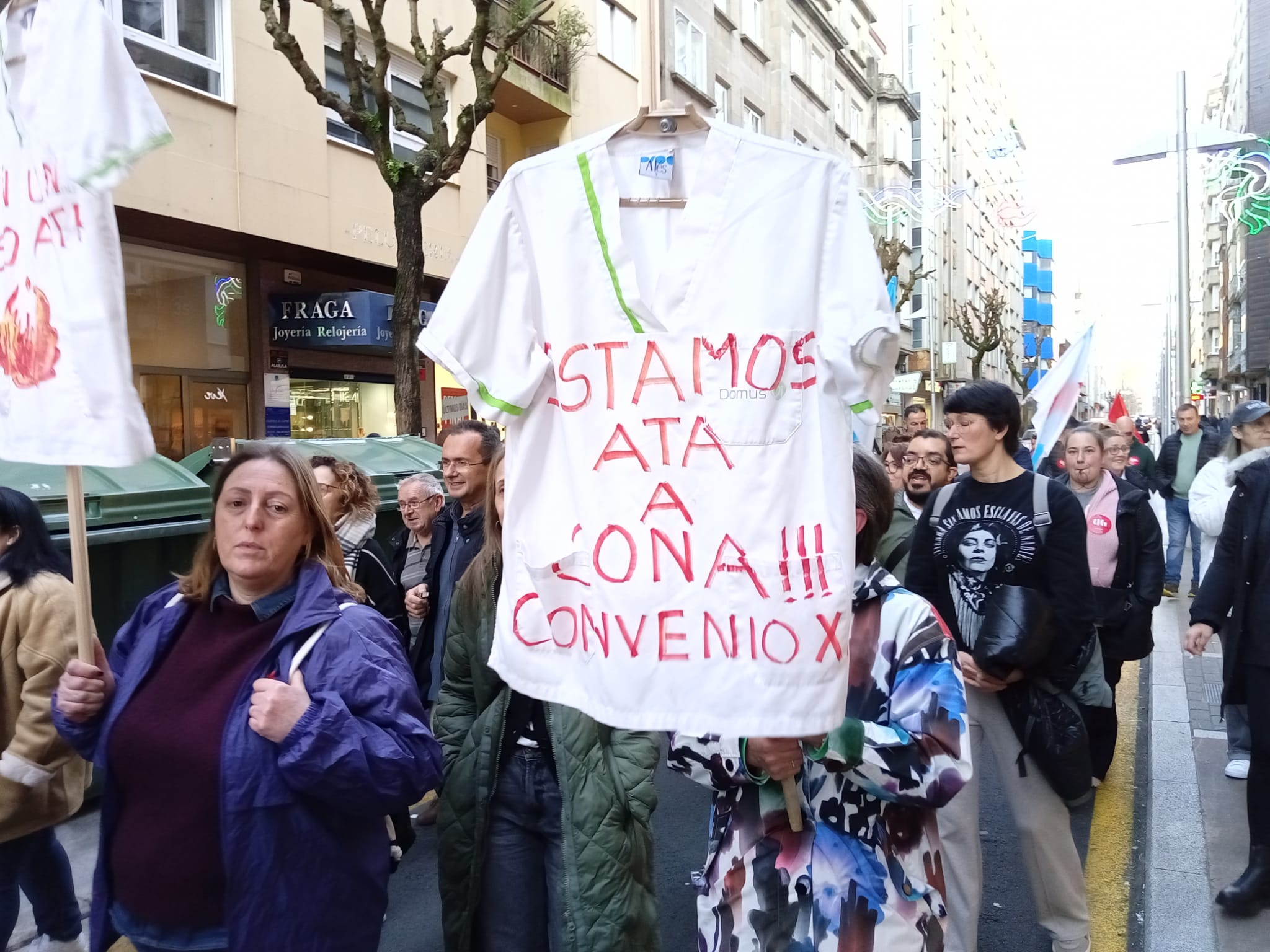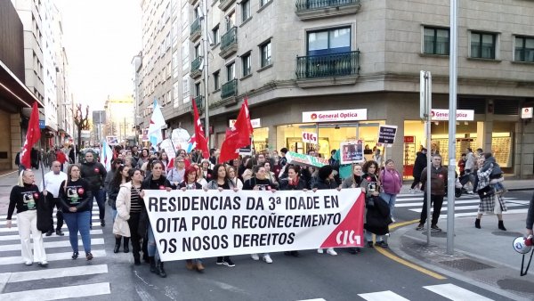 A marcha arrincou da residencia DomusVi da rúa Loureiro Crespo ás 18:30 horas e rematou na residencia Saraiva, na rúa Don Gonzalo, onde se deu lectura a unha manifesto coas principais reivindicacións do persoal do sector. Tamén se anunciou a celebración dunha asemblea nacional de delegadas/os do sector o vindeiro 7 de marzo no edificio Cersia de Santiago ás 10:30 horas para decidir as seguintes accións a levar a cabo para mellorar as condicións de traballo.