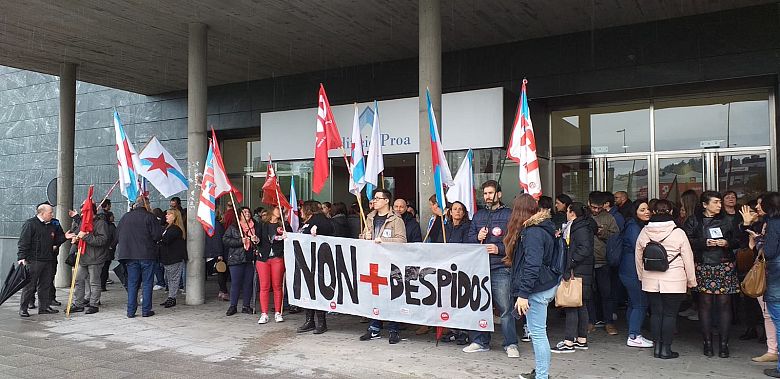 Pero ademais, Extel (do sector dos centros de chamadas e que conta con arredor de 600 empregadas/os na plataforma da Coruña) procedía o pasado martes a despedir á compañeira á que lle abrira expediente "baseado en mentiras e falsos argumentos sen sentido".