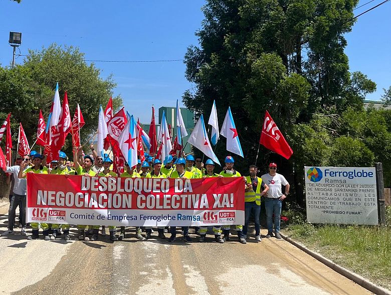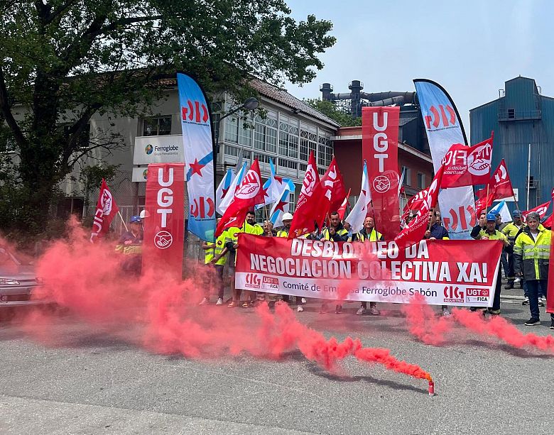 Os traballadores e as traballadoras da fábrica de FerroGlobe en Sabón (Arteixo) continuaron este mércores coas mobilizacións para reclamar o desbloqueo da negociación colectiva e reclamar un incremento salarial xusto. O persoal concentrouse ás 14h na entrada da fábrica, coincidindo co cambio de quenda laboral, mentres que no día onte, martes, foi o persoal da mina de Serrabal quen se mobilizou polo mesmo motivo.