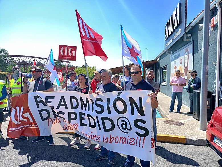 Os traballadores e as traballadoras da área de servizo de Galp na A-6 en Guitiriz volvéronse concentrar este venres para rexeitar a política de acoso e represalias aplicada pola empresa e reclamar a readmisión do compañeiro inxustamente despedido.