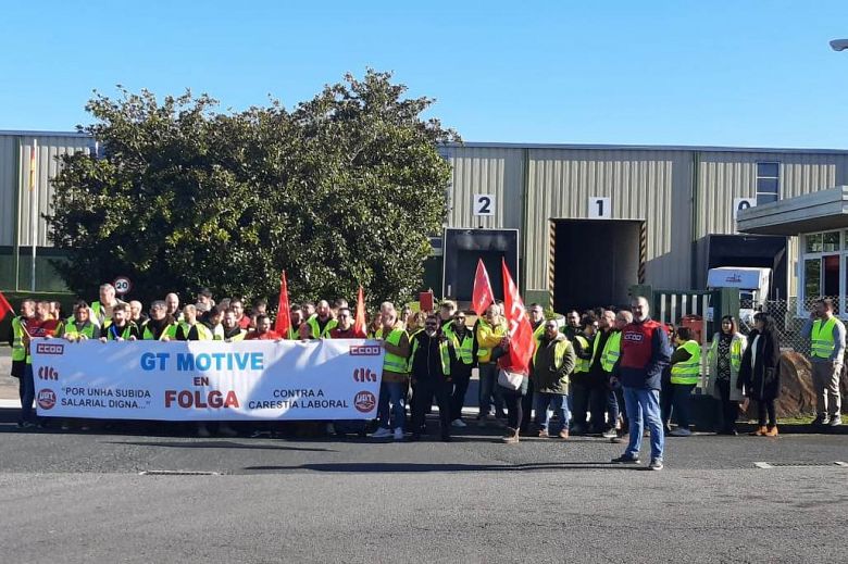 Os traballadores e as traballadoras de GT Motive iniciaron este venres un calendario de paros e mobilizacións para reclamar salarios dignos que permitan, cando menos, garantir o mantemento do poder adquisitivo. O paro, que se desenvolveu das 10 ás 15 horas, tivo un seguimento maioritario e foi acompañado dunha concentración diante das instalacións da empresa en Campolongo (Pontedeume). De non producírense avances na negociación, os paros e as protestas repetiranse os días 16 e 17 de febreiro.