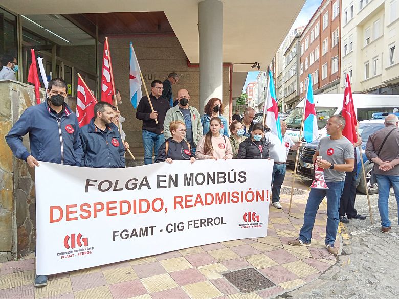 De xeito paralelo á folga, a CIG realizou esta mañá unha concentración diante dos xulgados de Ferrol coincidindo coa celebración do xuízo polo despedimento dun traballador nesta UTE do grupo Monbus. Aínda que a empresa alega que non hai carga de traballo abondo, para o responsábel de Transportes da FGAMT-CIG, Xesús Pastoriza, a rescisión do contrato é unha clara represalia sindical contra o traballador, que foi membro do comité. "Monbus ten unha política antisindical e de persecución que busca laminar a representación do persoal. Por iso temos solicitada a nulidade do despedimento", explica.