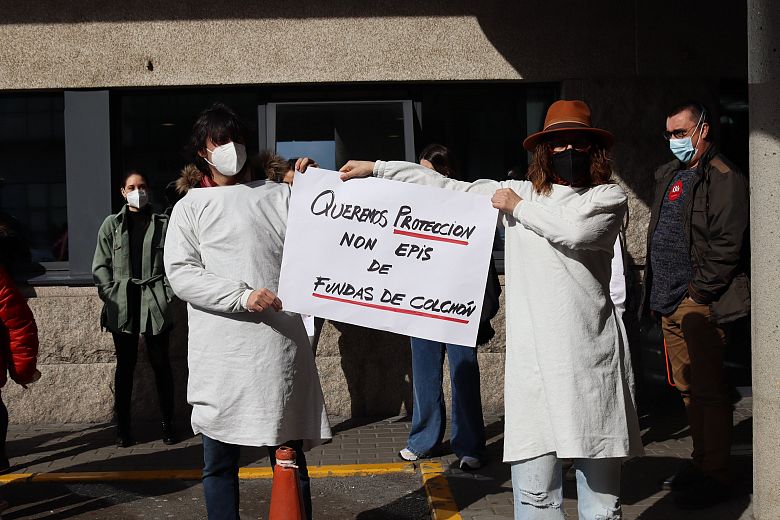 Aseguran que a pesar de que no verán se levou a cabo unha ampliación do servizo en 40 camas “non se contemplou a necesidade de melloras para atención na zona covid, nin sequera uns vestiarios seguros para o persoal”, nos que conflúen “limpos e contaminados” en cada quenda.
