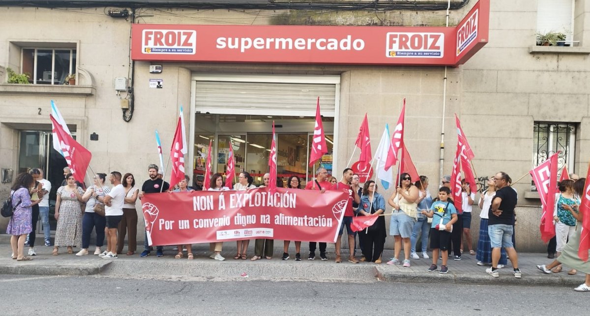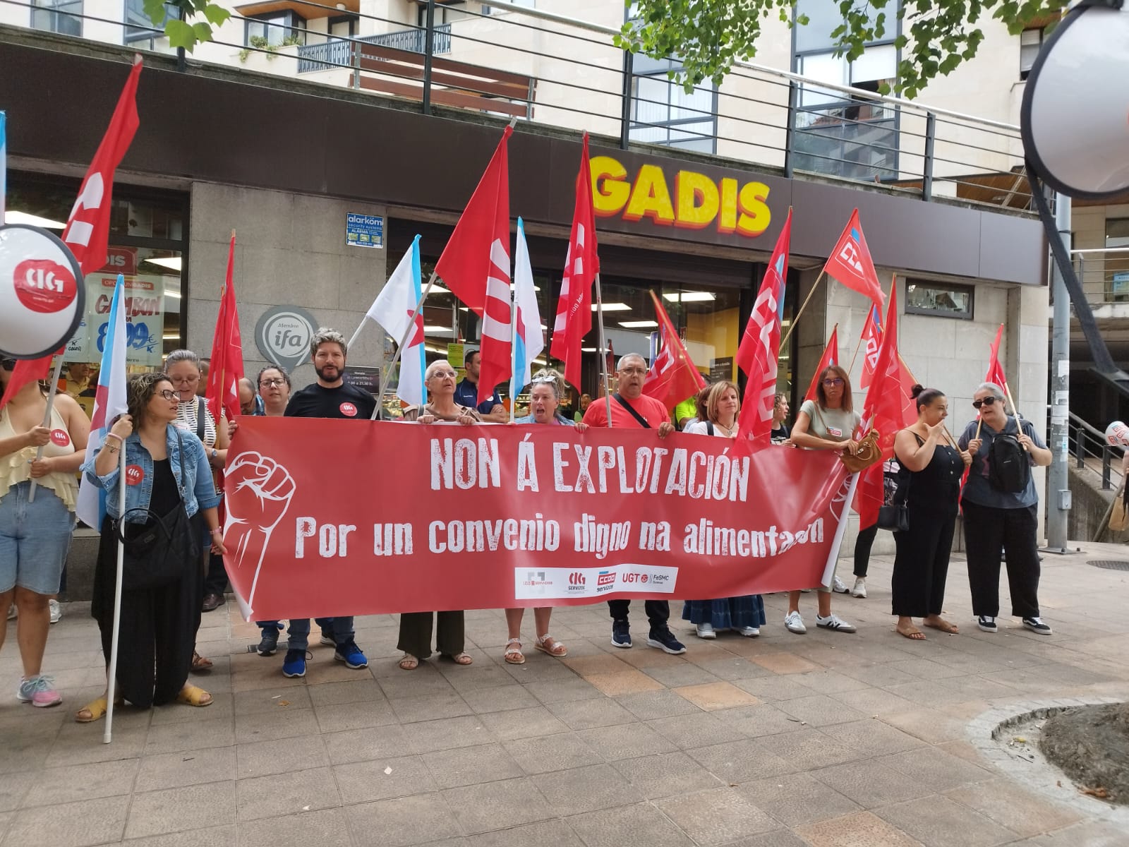 Traballadoras e traballadores do comercio de alimentación da provincia de Ourense continuaron este venres coas mobilizacións en demanda dun convenio colectivo digno. As concentracións realizáronse diante de tendas Gadis e Froiz, xa que xunto co Grupo Cuevas constitúen a patronal maioritaria do sector. As protestas desenvólvense tras a mediación deste xoves e ante a convocatoria de novas xornadas de folga para o 24 e 26 de xullo.