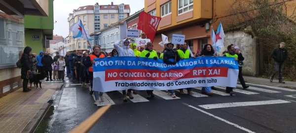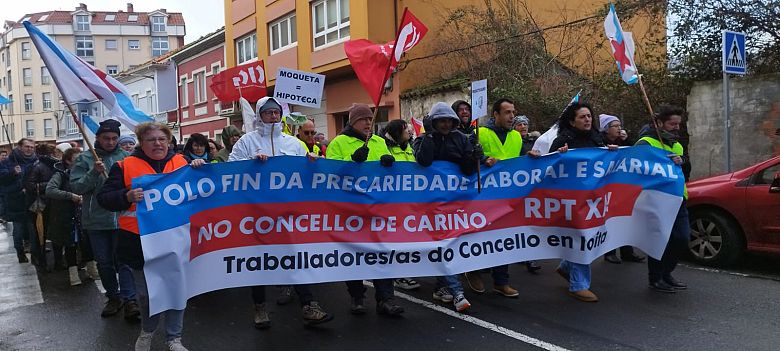 Dentro do calendario de mobilizacións acordado, o persoal municipal do Concello de Cariño manifestouse este domingo polas rúas da localidade para reclamar a fin da precariedade laboral e salarial que padecen, tras máis de 18 anos tentando que se negocie e aprobe a Relación de Postos de Traballo.