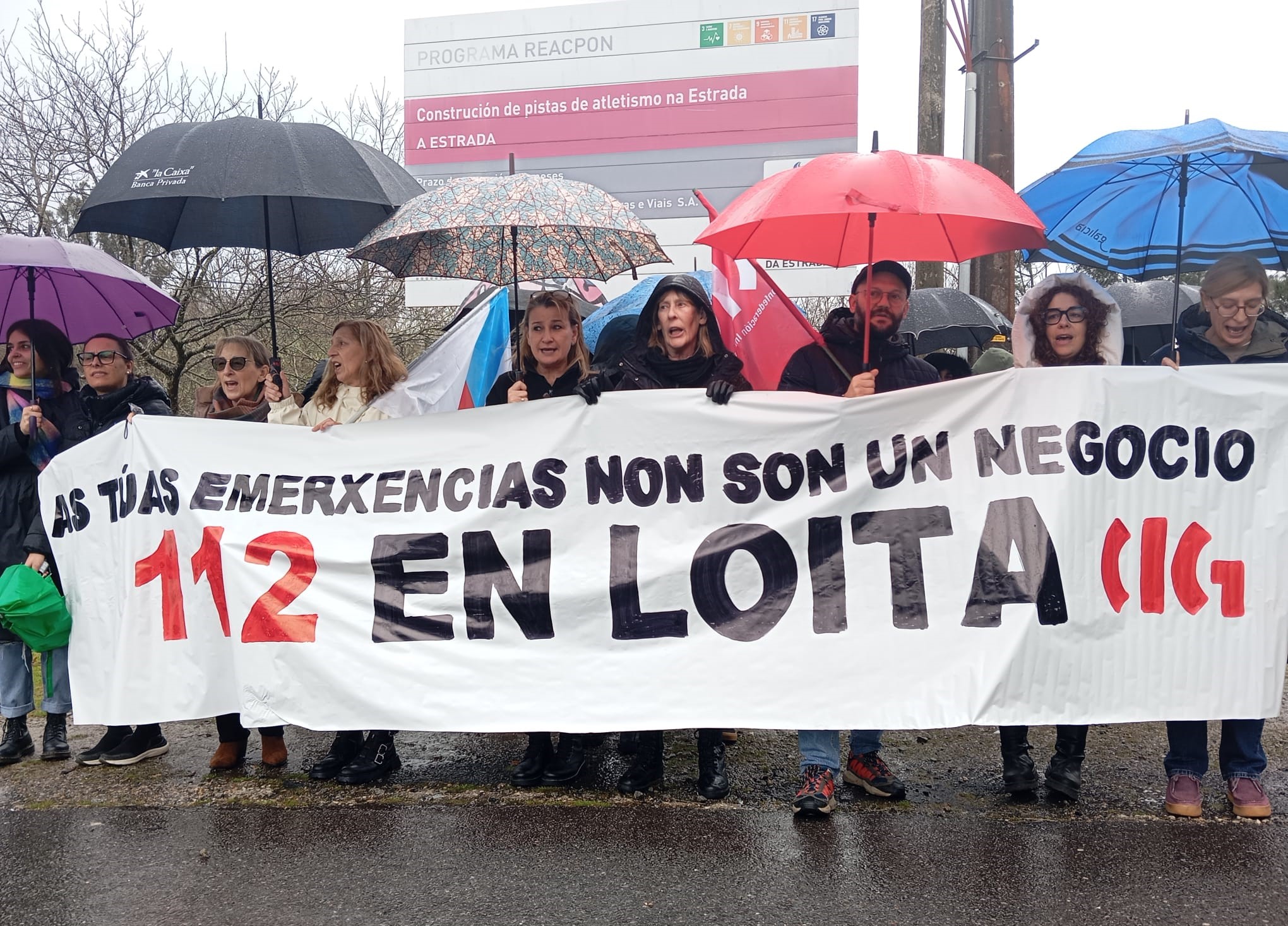 O persoal galego do teléfono de atención a emerxencias 112 desenvolveu hoxe unha concentración diante da central da Estrada para demandar a xestión pública do servizo, coincidindo co Día Europeo do 112. A mobilización, que se tivo lugar no cambio de quenda de 14:30 a 15:00 horas, fai parte da iniciativa adoptada a nivel estatal pola representación sindical de boa parte das comunidades autónomas tras o acontecido durante a dana para denunciar que as emerxencias “non son un negocio”. Paralelamente celebrouse unha manifestación en Valencia na que participou persoal do 112 de todo o Estado.
