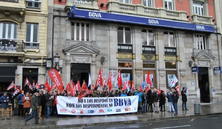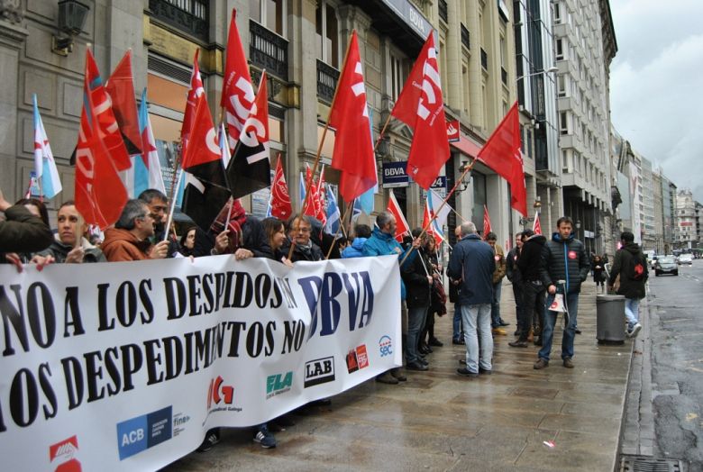 Durante a protesta, o Secretario da Sección Sindical da CIG no BBVA, Miguel Fernández, explicou que dende xuño do ano pasado houbo máis de 50 despedimentos na entidade, aos que hai que sumar un número indeterminado de baixas "aparentemente voluntarias" e excedencias “forzadas”. Estes despedimentos, denuncia, "non teñen ningunha base. A empresa alega unha baixada voluntaria da produtividade, pero logo, para evitar ir a xuízo recoñece a improcedencia".