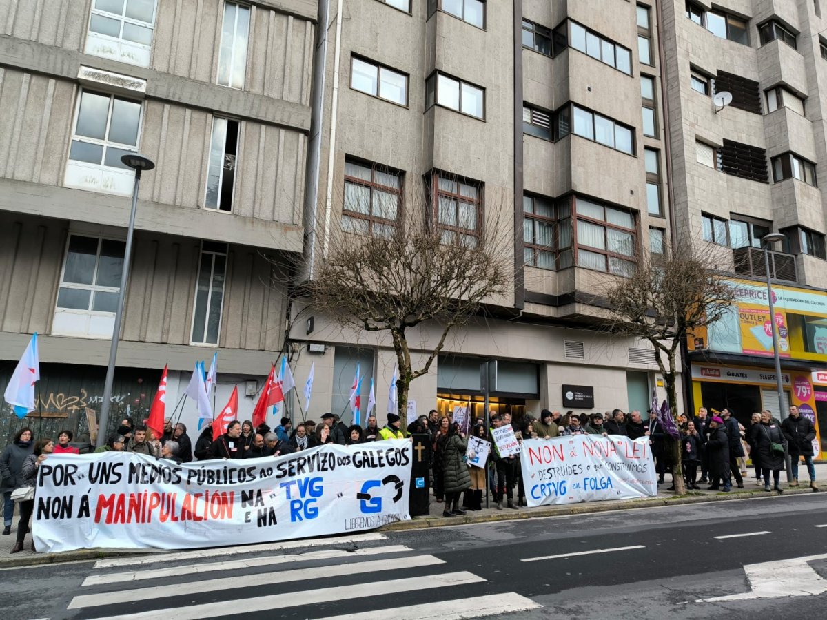 Cunha xornada de folga e unha concentración diante do Parlamento de Galiza recibía o persoal da CRTVG e a plataforma “Por unha CRTVG ao Servizo do Pobo” a nova lei de medios imposta polo PP. Unha lei que avanza nun modelo de radio e televisión en Galiza menos democrática, máis privatizada e menos galega.