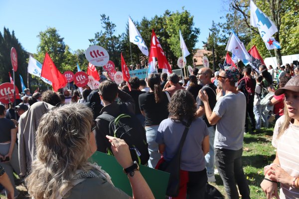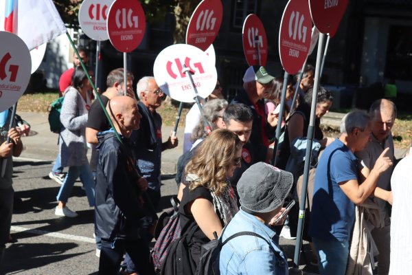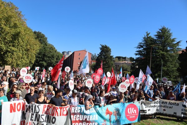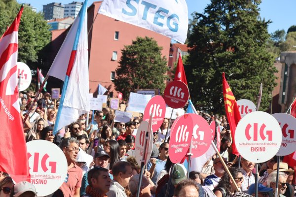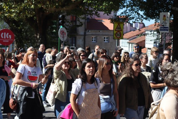 Profesorado, alumnado e ANPAS tomaron esta mañá as rúas de Compostela, coincidindo coa xornada de folga convocada para denunciar a política de recortes e propaganda do PP na Xunta de Galiza e para reclamar a recuperación de dereitos. Unha folga na que a CIG-Ensino sitúa por riba do 60% a porcentaxe de asistencia, cun incremento moi importante en infantil e primaria a respecto dos paros de 2023, “o que demostra a fartura e o malestar do profesorado coas políticas da Consellaría”.