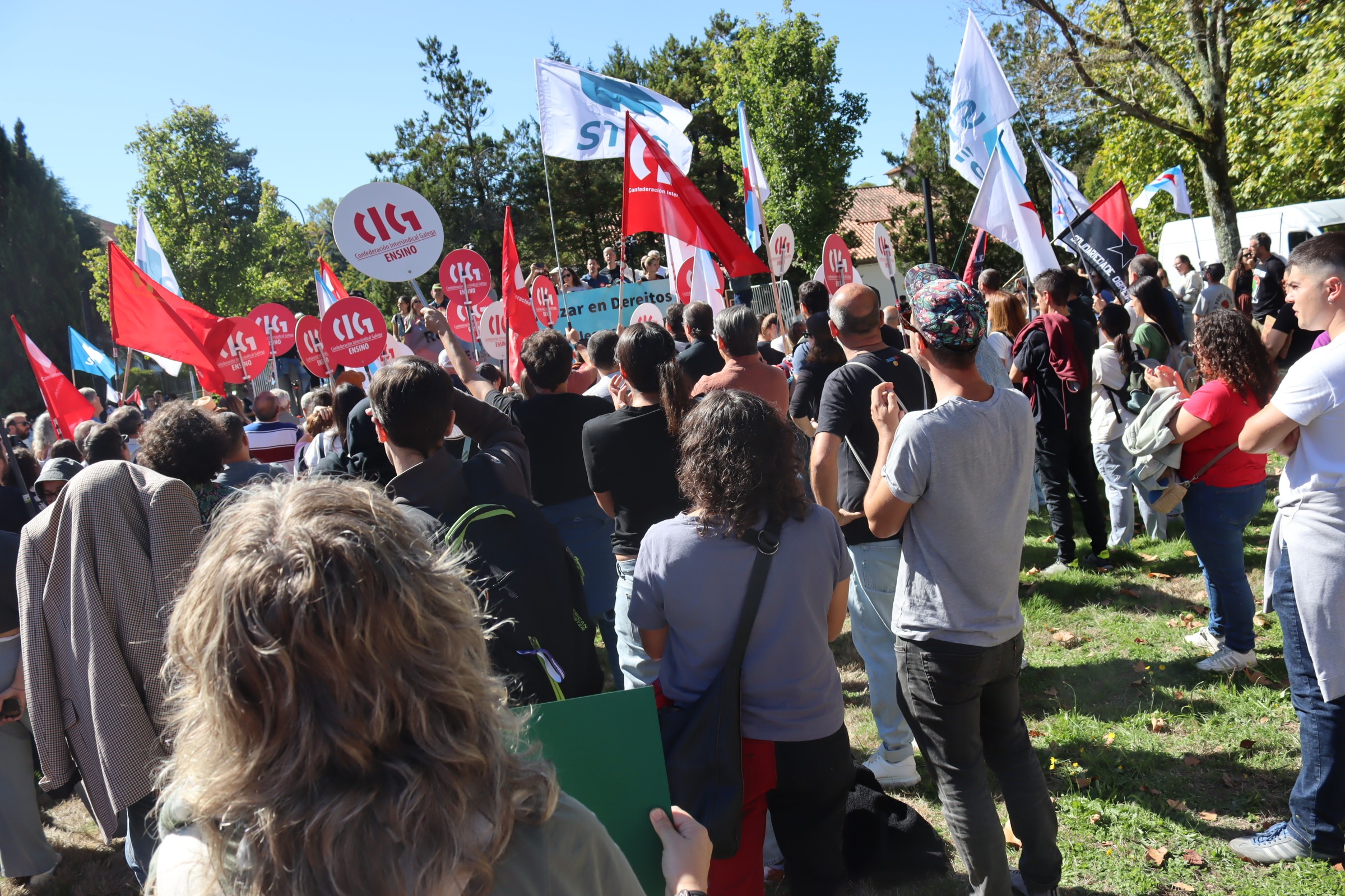 Como se lembrou na lectura do manifesto, por parte da representante de STEG, Comba Campoy, e a secretaria nacional de CIG-Ensino, Laura Arroxo, á suma dos recortes nos últimos anos, e xa van 15, “engádenselle os últimos perpetrados este mesmo verán: a non convocatoria das prazas de atención preferente, nin das asesorías técnicas da Consellaría, a supresión de RAOGAL e a eliminación das licenzas por formación retribuídas. Até o último momento padecemos a política insaciábel da Consellaría de quitarnos dereitos á vez que incrementa de forma obscena a propaganda e a publicidade”.
