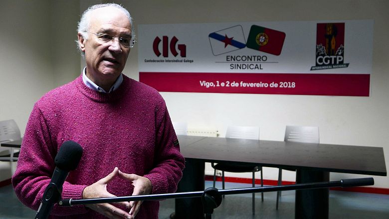 O secretario xeral da CGTP-IN, Arménio Carlos, visitou Galiza recentemente para participar nun encontro sindical coa CIG no que se analizou a situación sociolaboral de ambos países e se asinou un protocolo de colaboración entre as dúas centrais sindicais. Aproveitamos a súa presenza no país para coñecer a súa opinión a respecto de cuestións como a evolución económica de Portugal e os efectos sobre a clase traballadora, o proxecto da Unión Europea ou a campaña de mobilizacións que está a protagonizar a organización que representa e que vén de vivir un novo exemplo a semana pasada cunha manifestación na que milleiros de mozos/as reclamaron nas rúas de Lisboa o fin de precariedade e dos baixos salarios.