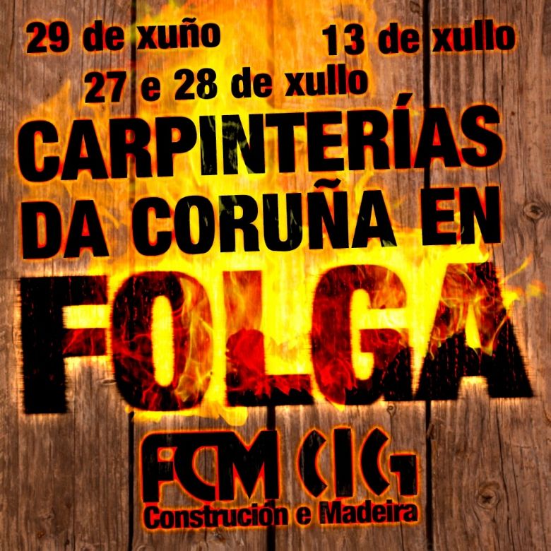 O sector de Carpintaría e Ebanistaría da provincia da Coruña irá á folga o 29 de xuño e o 13, 27 e 28 de xullo