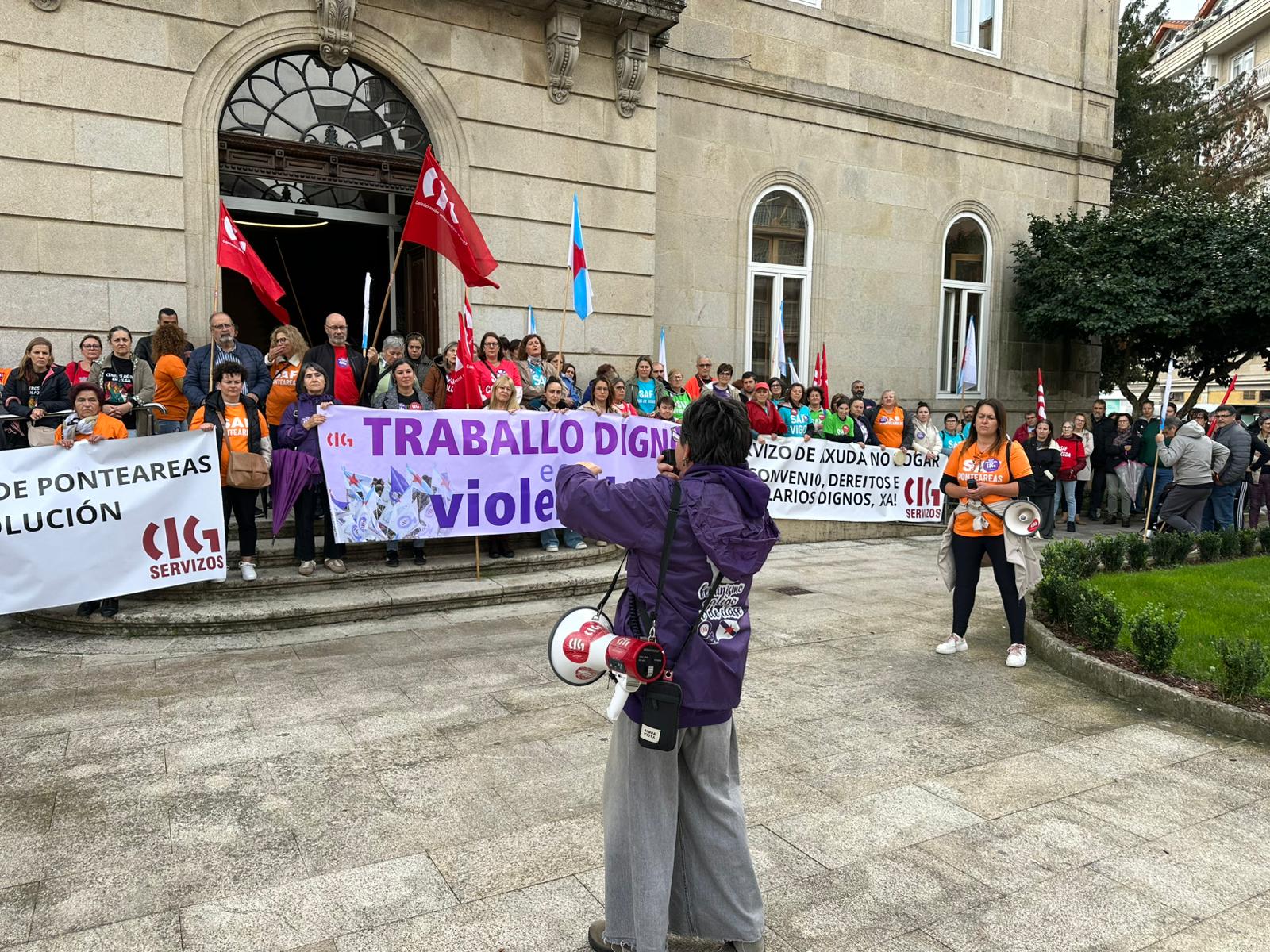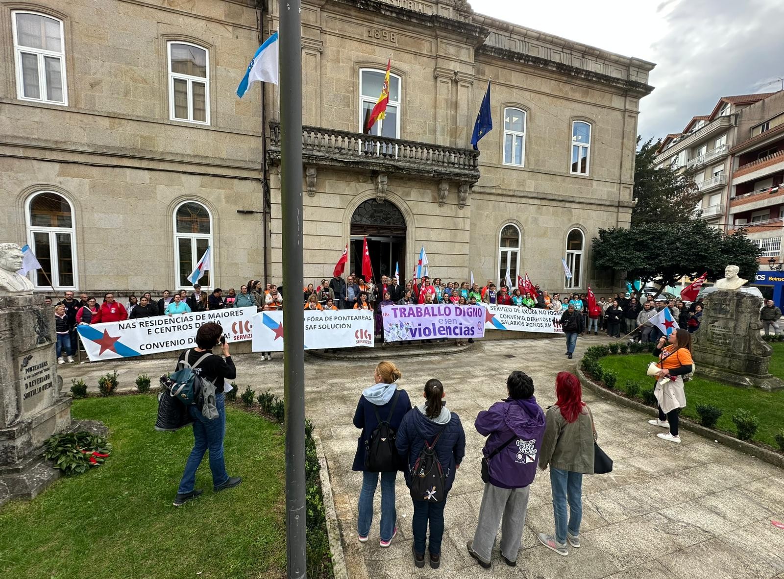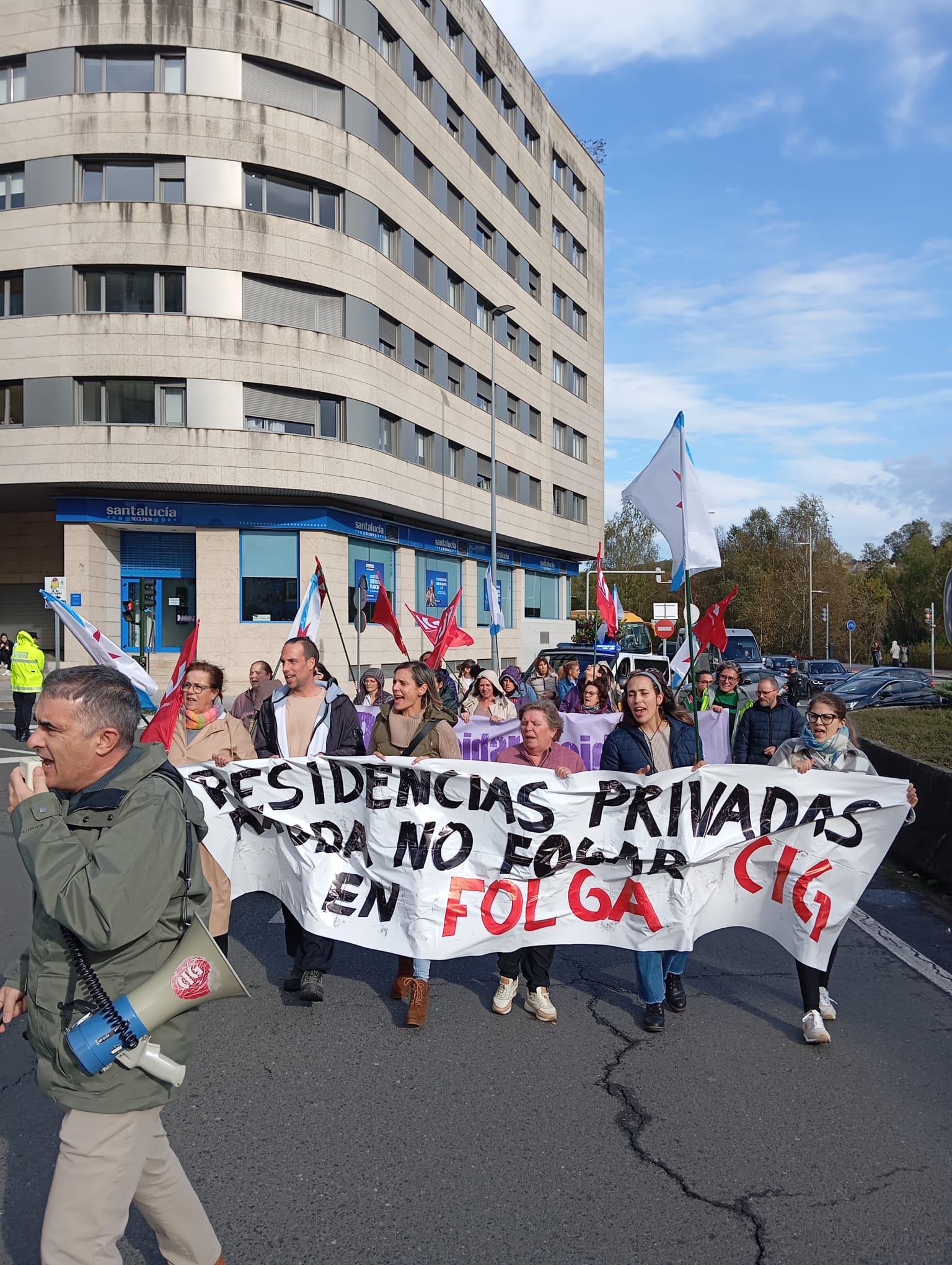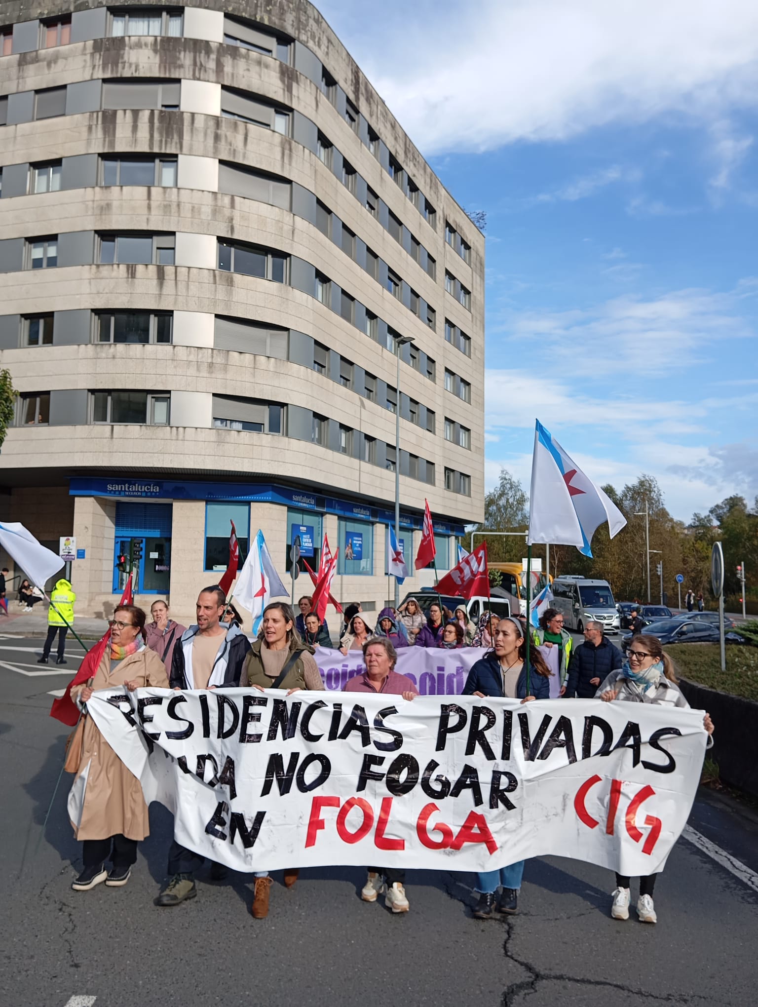 Mais tamén para reclamar un Sistema Público Galego de Servizos de Atención as Persoas que integre os centros asistenciais e residenciais da terceira idade; centros de día; centros de atención á diversidade; servizos de Axuda no Fogar; e outros recursos como Casas Niño, Casas do/a Maior, Xantar na Casa ou Transporte Adaptado. “Servizos que teñen que estar dotados suficientemente tanto de infraestruturas e material como de recursos humanos e nos que se dignifiquen as condicións laborais e salariais do persoal, maioritariamente mulleres, coa aplicación do mesmo convenio”.