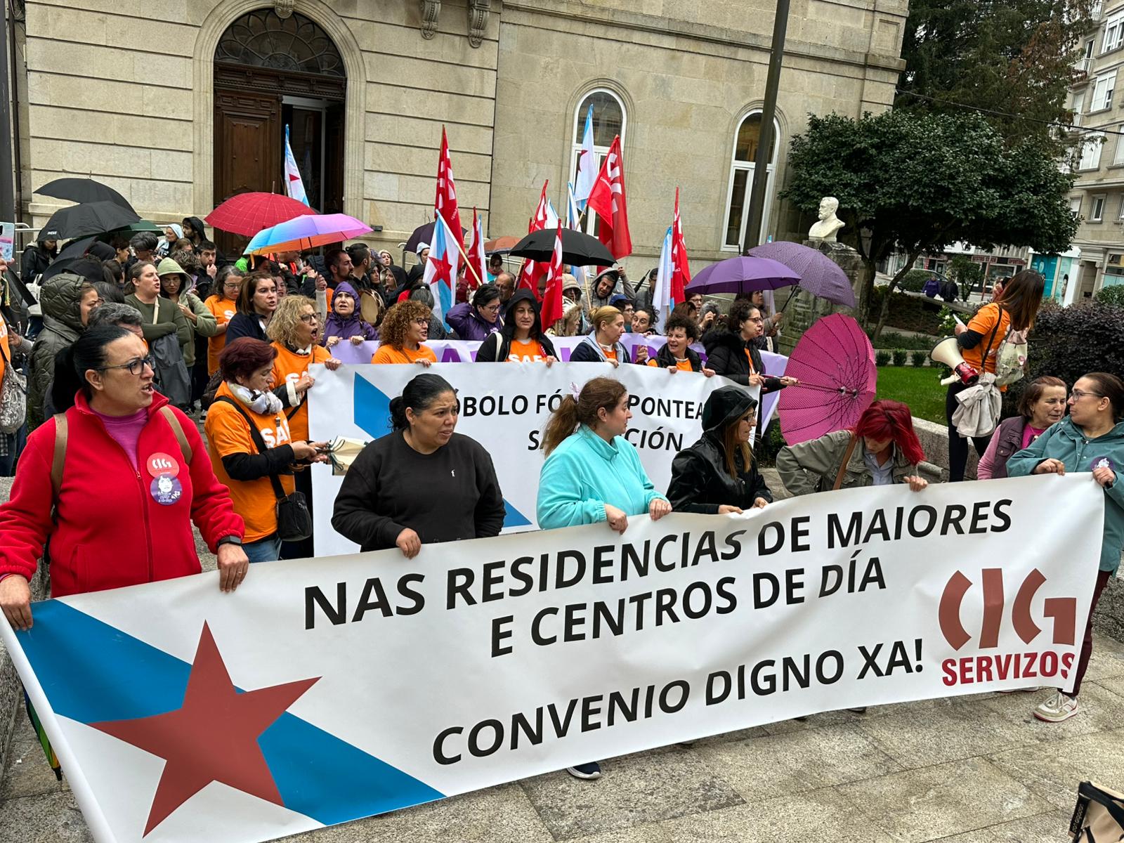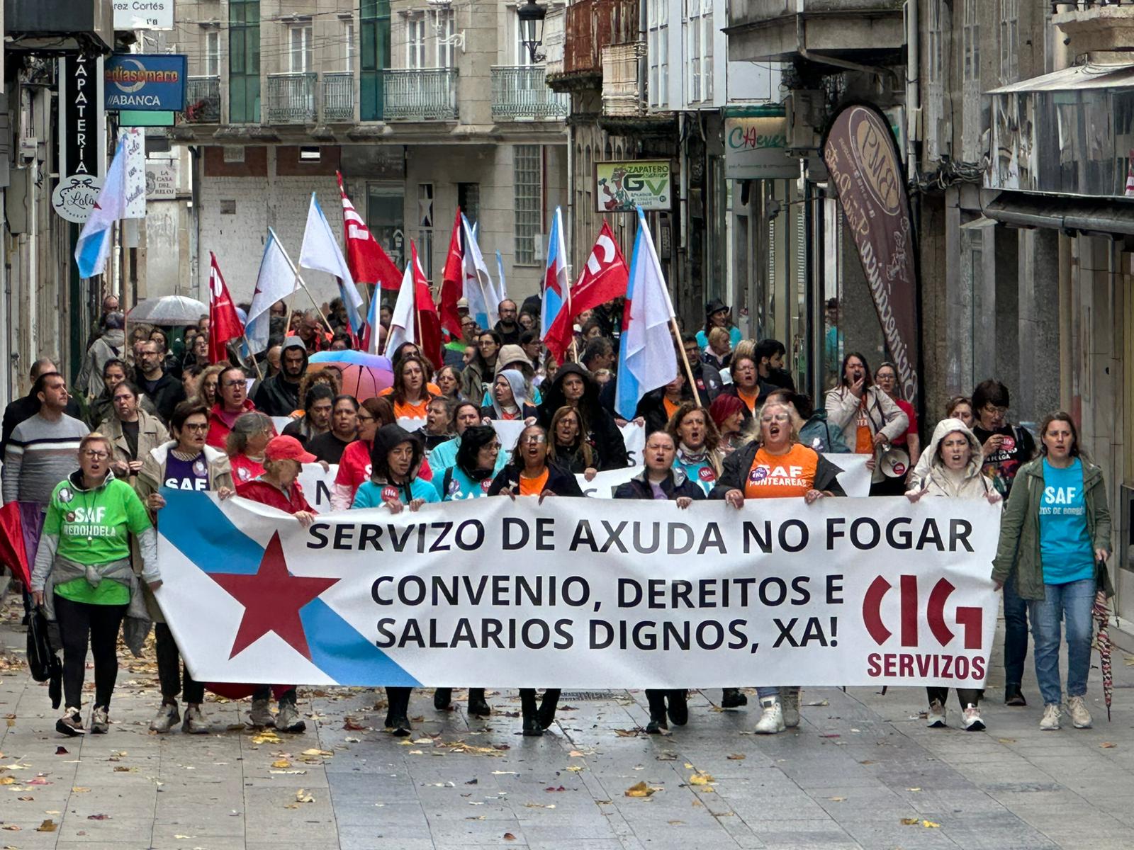 Con esta loita as persoas traballadoras do sector están a reclamar convenios colectivos que dignifiquen as condicións de traballo e garantan unha atención de calidade, tal e como lembran dende a CIG-Servizos, ao tempo que denuncian a parálise da negociación por parte dunhas patronais que se negan a sentarse e coa “complicidade” da conselleira de Política Social, Fabiola García, “a pesar de que a Xunta é a máxima responsábel dos servizos de atención ás persoas dependentes”.