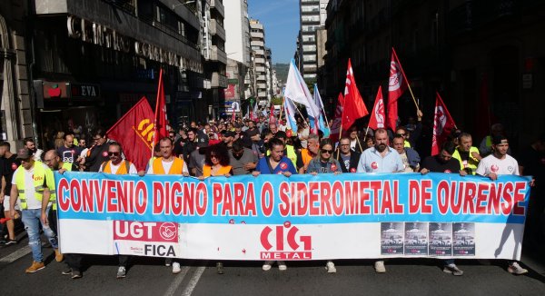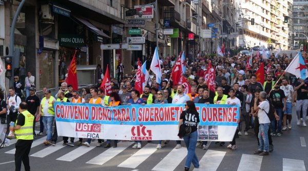 A CIG e a UGT anunciaron hoxe a convocatoria de tres novas xornadas de folga no siderometal ourensán para os vindeiros días 28, 29 e 30 de outubro para reclamar un convenio colectivo provincial digno. Coincidindo co segundo paro que tivo lugar hoxe e que rexistrou ao igual que no día de onte un seguimento moi amplo, centros de persoas traballadoras percorreron en manifestación o centro da cidade dende a Casa Sindical até a Confederación Empresarial de Ourense (CEO).