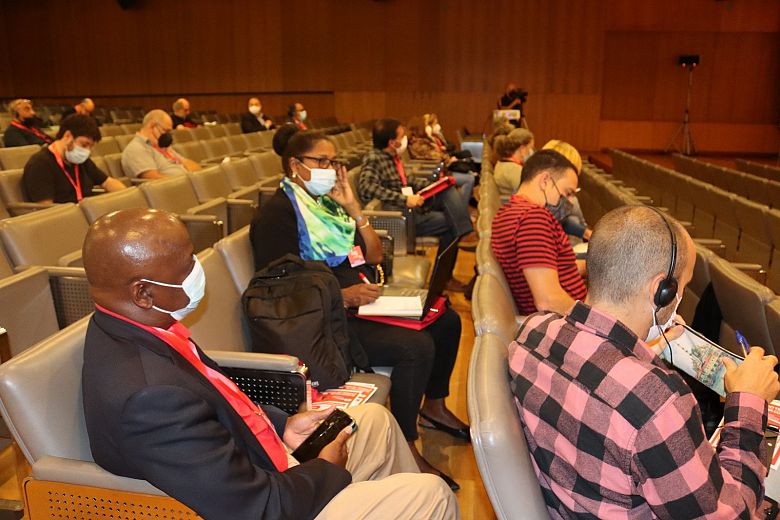 Así denunciouse a chamada dixitalización dos procesos produtivos e da descarbonización da economía, que están aumentando as ameazas económicas, industriais, sociais e laborais para o conxunto da clase traballadora e dun desenvolvemento soberano dos pobos e das nacións do mundo.