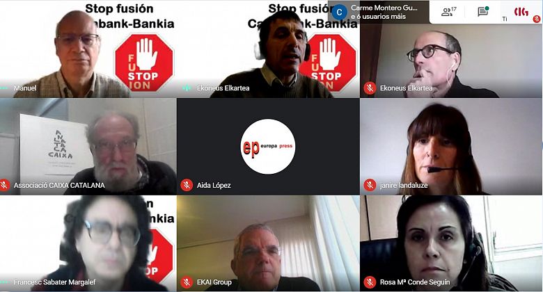 Na rolda de prensa participaron Manuel Nolla, Francesc Sabater, Rosa Conde e Janire Landaluze en castelán, catalán, galego e eúscaro que denunciaron que “os reguladores non cumpren a súa función” porque é evidente que “esta fusión vai totalmente en contra da competencia”, xa que tras ela, a nova CaixaBank controlaría máis do 35% de oficinas nos territorios máis importantes.