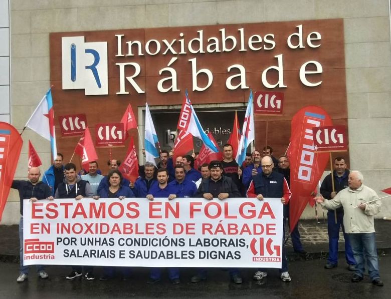 A totalidade do persoal operario de Inoxidables de Rábade (situada no Concello de Outeiro de Rei) está secundando a primeira xornada da folga indefinida para esixir melloras salariais e laborais. As e os traballadores están secundando paros laborais de dúas horas en cada unha das quendas e concentracións diante das portas da fábrica para reclamar a dirección que sente negociar a táboa reivindicativa.