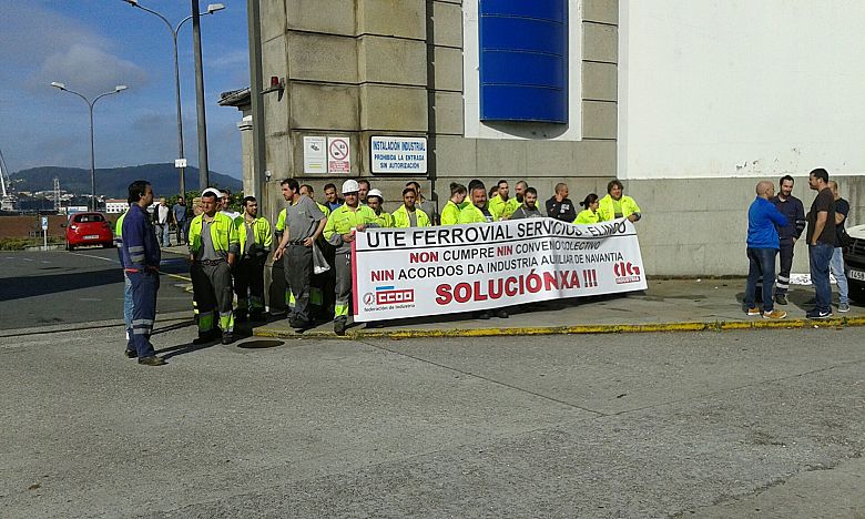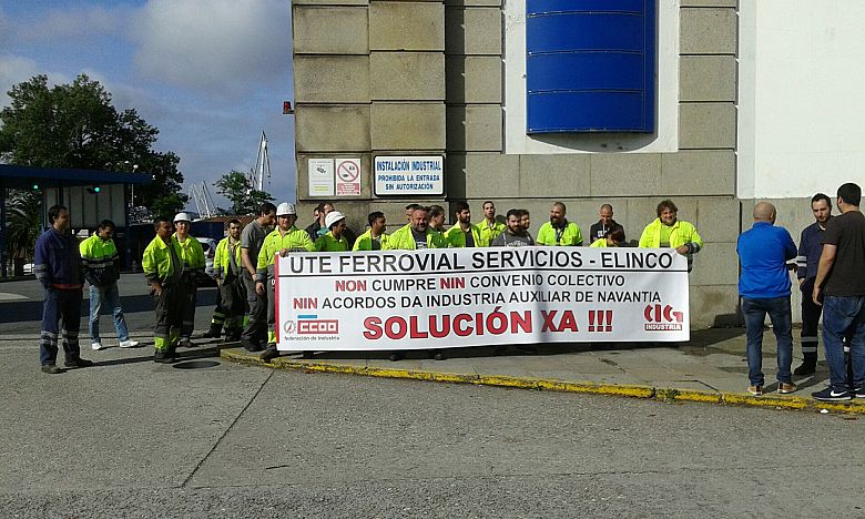 Os traballadores/as da UTE Ferrovial Servicios-Elinco secundaron este venres un paro laboral de dúas horas para esixir e empresa (gañadora do contrato de mantemento dentro dos centros de Navantia Fene - Ferrol) que cumpra as condicións laborais e salariais marcadas no convenio do metal da Coruña e que aplique dunha vez os acordos asinados para a industria auxiliar.