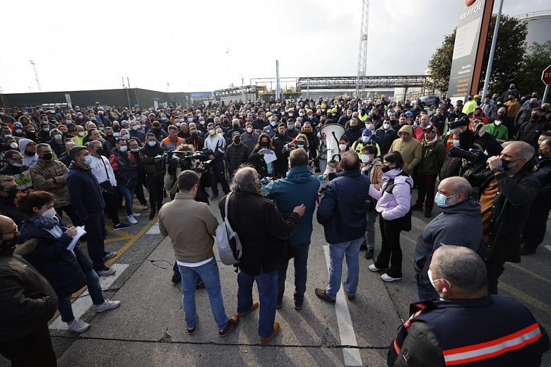 Paro do persoal das contratas para esixir responsabilidades polo accidente e que Repsol atenda as súas demandas