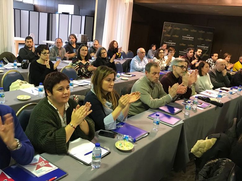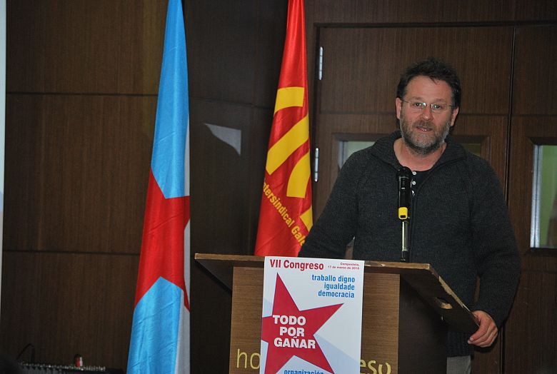 O secretario xeral da CIG, Paulo Carril, que foi o encargado de clausurar o VII Congreso da federación Banca, Aforro, Seguros, Oficinas e Centros de Chamadas, denunciou o avance da precariedade e da represión no Estado español e emprazou a abrir un debate para a convocatoria dunha folga xeral coa que exixir a recuperación dos dereitos laborais e sociais arrebatados á clase traballadora so pretexto da crise.