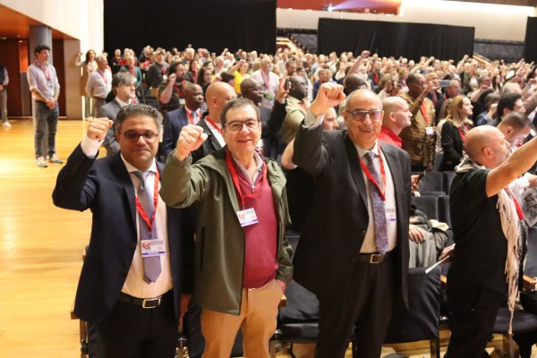 Procedeuse á lectura das resolucións, aprobadas por aclamación, e interviñeron parte das delegacións convidadas. Foi a quenda de Garbiñe Aramburu, coordenadora xeral de Langile Abertzaleen Batzordeak (LAB); Filipe Manuel Marques Pereira, da Dirección da Confederaçao Geral de Trabalhadores de Portugal (CGTP-IN); Sergi Perelló, secretario xeral da Intersindical-Confederación Sindical de Cataluña (I-CSC); Mitxel Lakuntza, secretario xeral de Eusko Langileen Alkartasuna (ELA); Maaina Fiha Salma Elrguibi, da Unión Xeral de Traballadores/as de Saguia El Hamra e Río de Oro, do Sáhara Occidental (UGTSARIO); e Soussan Taisser Abdel Salam, secretaria xeral da Unión Nacional de Xerusalén de Traballadores/as Palestinos/as e vicepresidenta da Federación Sindical Mundial (FSM).