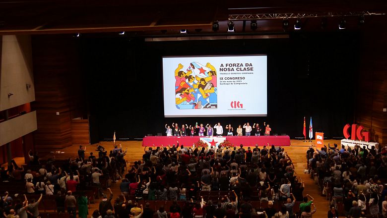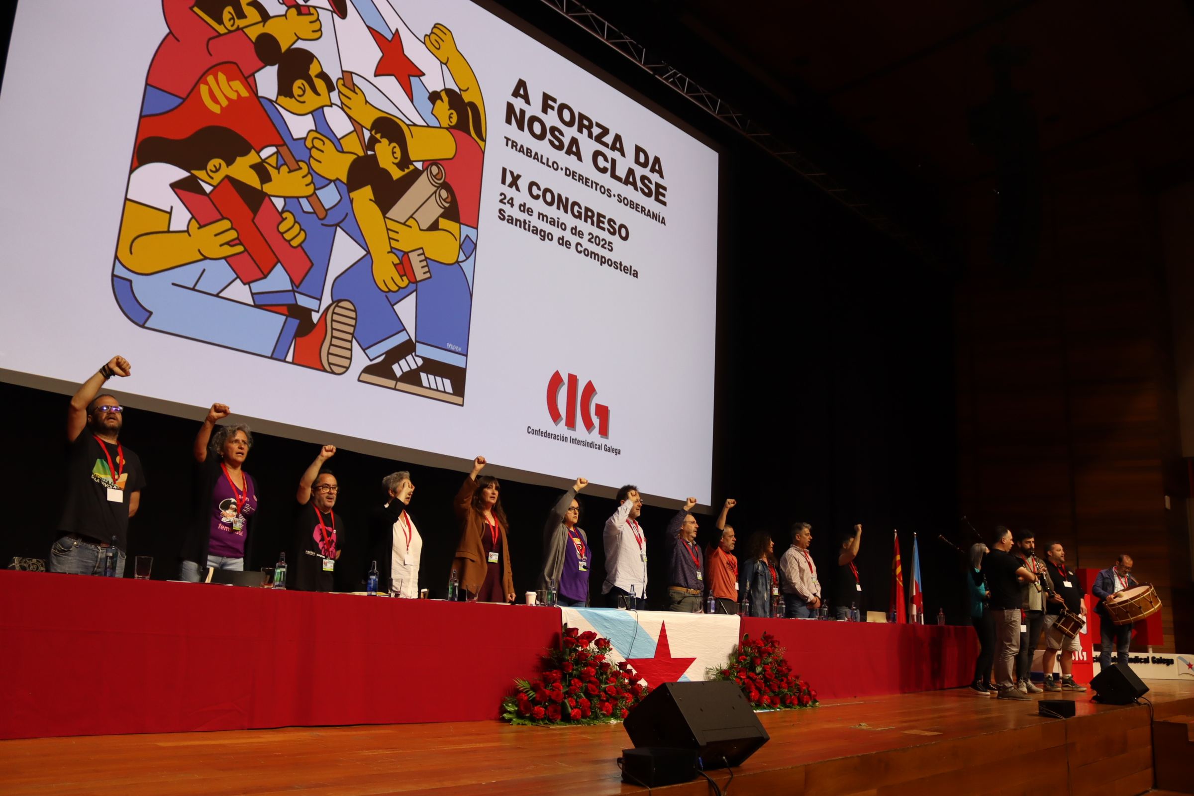 O IX Congreso da CIG, celebrado baixo o lema “A Forza da Nosa Clase. Traballo. Dereitos. Soberanía” elixiu este sábado a nova executiva confederal, a comisión de garantías e reelixiu a Paulo Carril como secretario xeral con 508 a favor, 30 en branco e 3 nulos. Tras dunha intensa xornada de debate, as e os congresistas debateron e aprobaron os relatorios de Acción Sindical por 427 votos a favor e 1 abstención, e de Organización, por 378 votos a favor e 1 abstención. Os documentos recollen as liñas de traballo que han guiar a acción da CIG nos vindeiros catro anos.