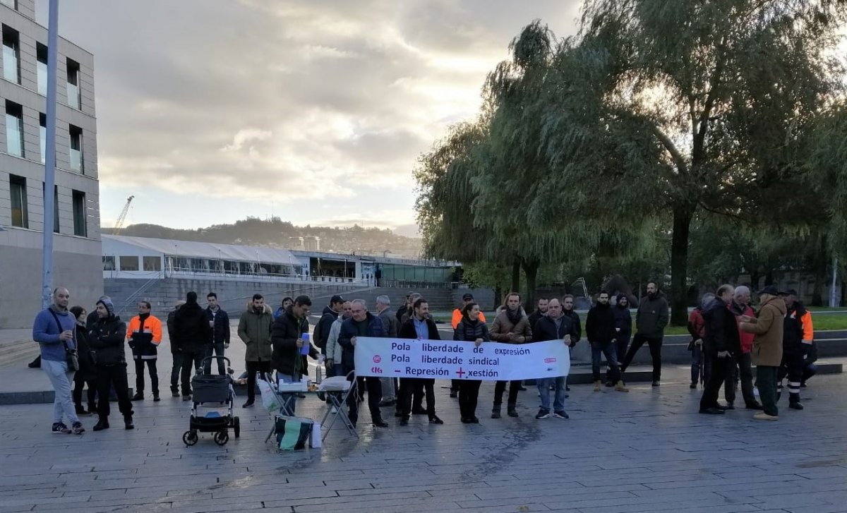 Persoal da Autoridade Portuaria de Vigo participa nun “almorzo solidario” en apoio dos catro compañeiros denunciados polo presidente