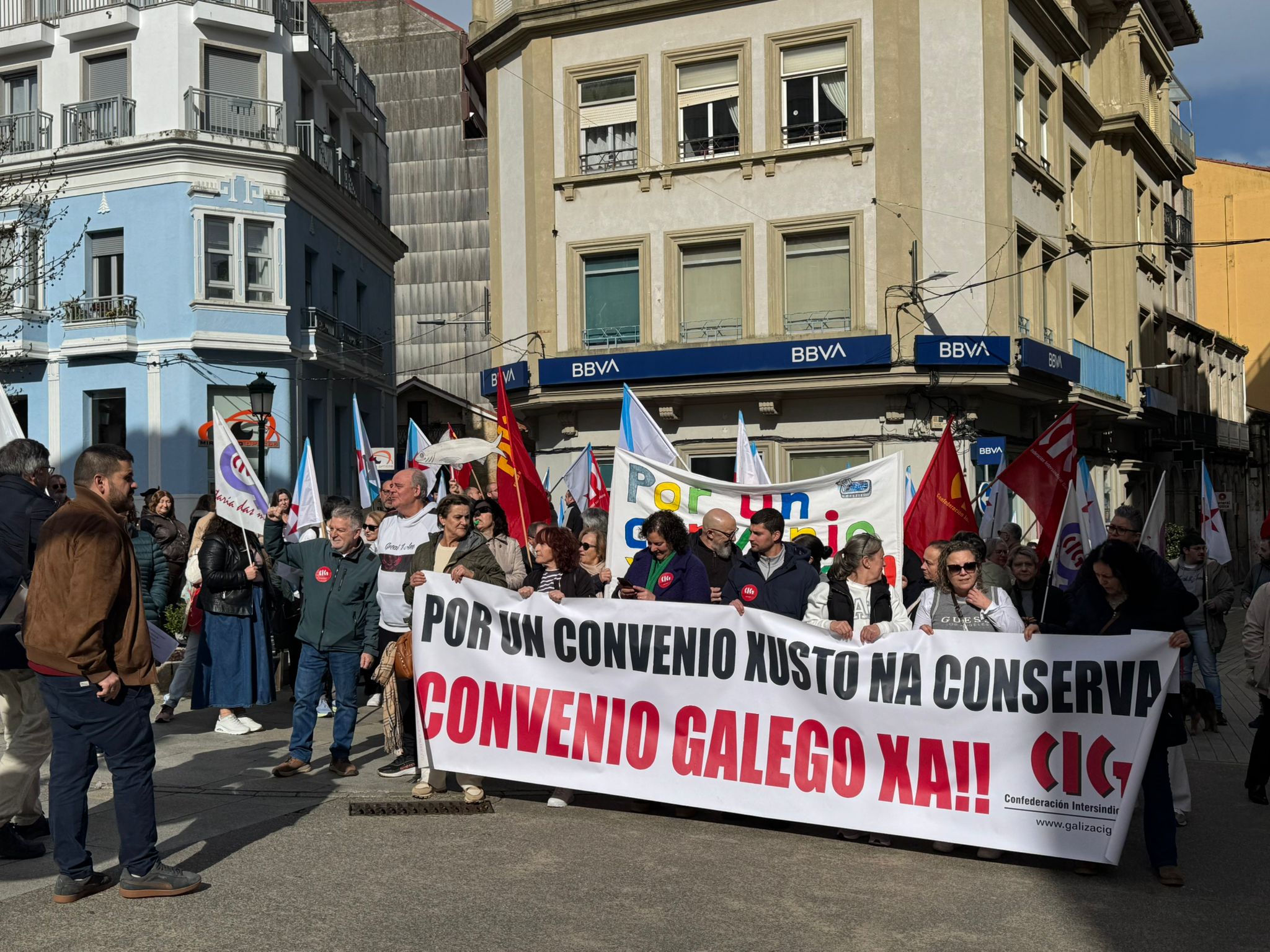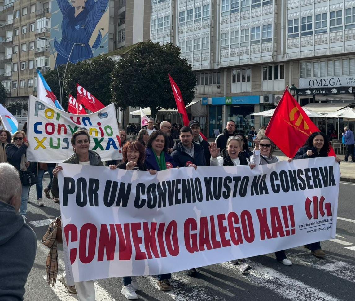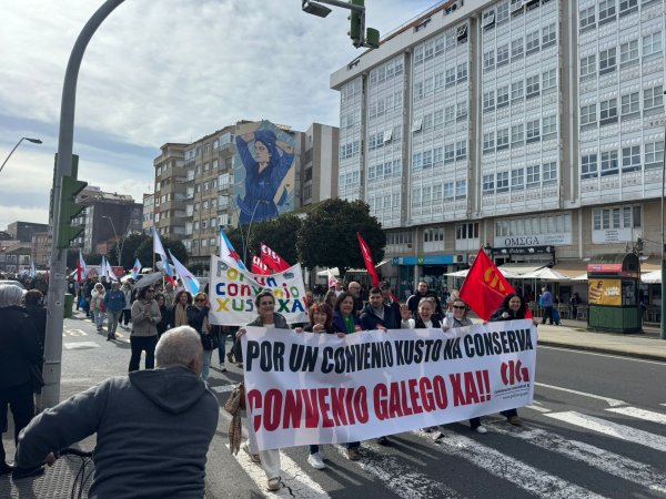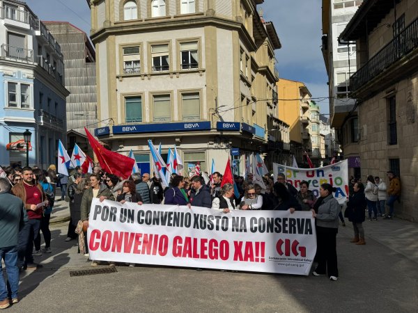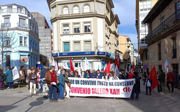 Persoal do sector conserveiro galego volveu mobilizarse hoxe para rexeitar o acordo de convenio colectivo regresivo asinado en Madrid por UGT e CCOO. Varios centos de persoas traballadoras percorreron as rúas da localidade barbancesa de Ribeira para reclamar unha suba salarial real e unha redución da xornada laboral.