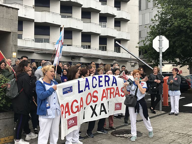 Traballadoras e traballadores do servizo de limpeza do Hospital da Coruña concentráronse esta mañá para esixir á empresa concesionaria, Lacera, que abone de inmediato os atrasos salariais que ten pendentes de pagar. O persoal denuncia que no ano 2016 xa tivo que recorrer á vía xudicial para que poder percibir os incrementos aos que ten dereito e urxe á compañía a abonar as contías de inmediato, xa que está a piques de rematar o contrato.