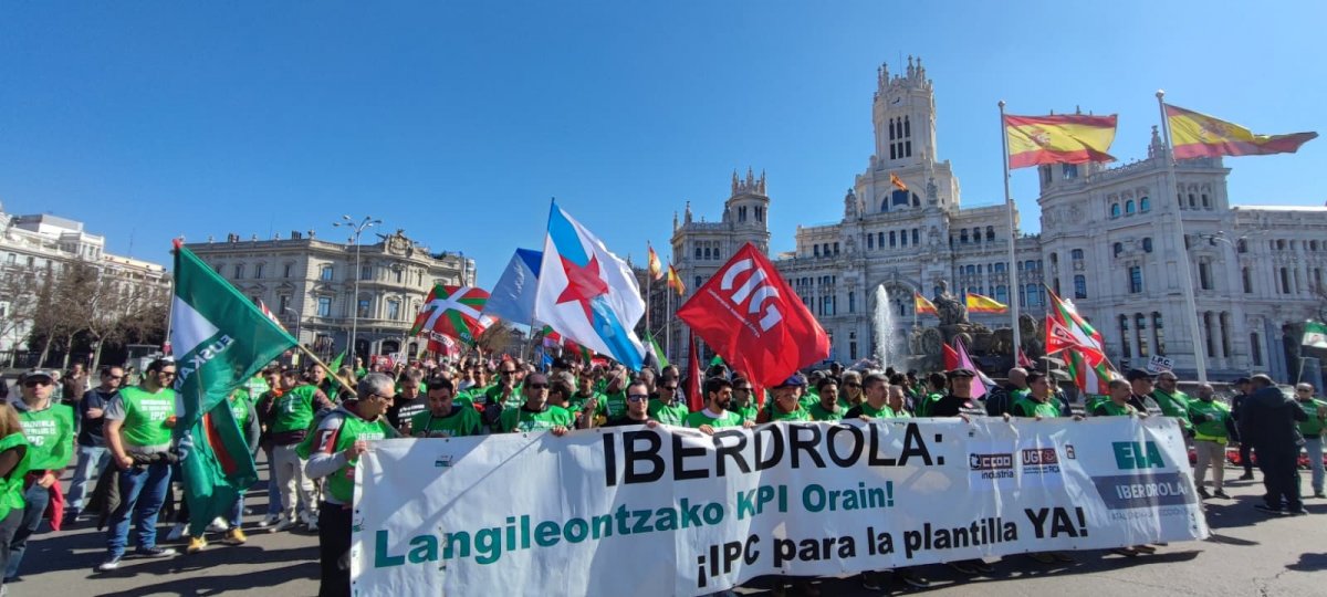 Persoal de Iberdrola de todo o Estado -tamén de Galiza- mobilizouse este sábado 28 polas rúas de Madrid para reclamar melloras laborais e denunciar a “mala fe” e a “avaricia” amosada pola empresa na negociación do IX Convenio Colectivo.