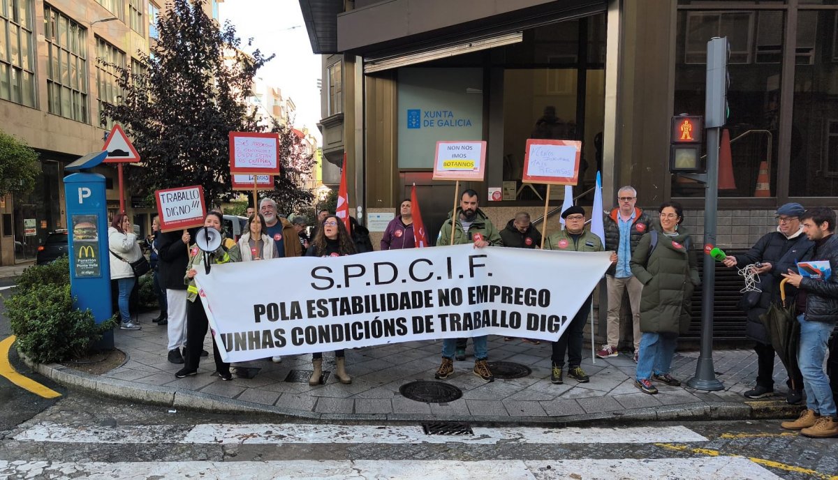 Un grupo de persoas traballadoras do Servizo de Prevención e Defensa contra Incendios Forestais (SPDIF) mobilizouse hoxe en Ourense convocado pola CIG para reclamar un servizo público, digno e profesional que estea operativo durante todo o ano. A protesta tivo lugar diante da delegación da Xunta coincidindo cunha xuntanza na que participaba a conselleira de Medio Rural. Nos próximos días desenvolverán novas accións e asembleas por todo o país.
