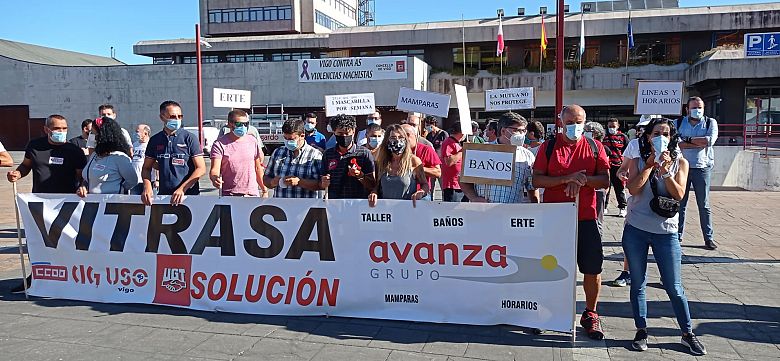 Persoal de Vitrasa, empresa que ten a concesión do transporte urbano de Vigo, realizou unha nova concentración este venres (e xa van cinco) diante do concello para esixir do Goberno municipal e da compañía que atendan as problemáticas formuladas polo comité e para denunciar o incumprimento nas medidas anunciadas polo alcalde a respecto das compensacións pola aplicación do ERTE.