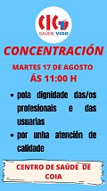 Persoal do Centro de Saúde de Coia concentrábase esta mañá ás portas do consultorio para denunciar a situación extrema que está a vivir a atención primaria. Un deterioro do que responsabilizan á consellaría de Sanidade pola súa mala xestión e que está a provocar que a situación das profesionais sexa de total desesperación.