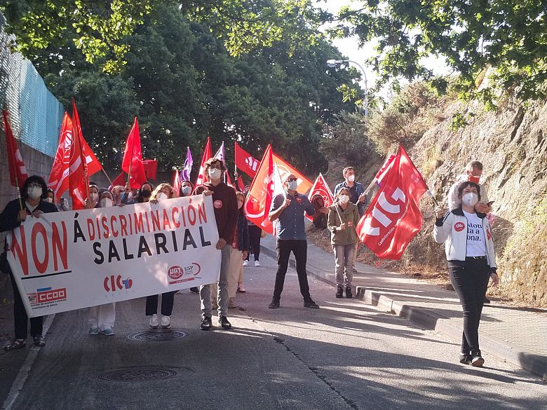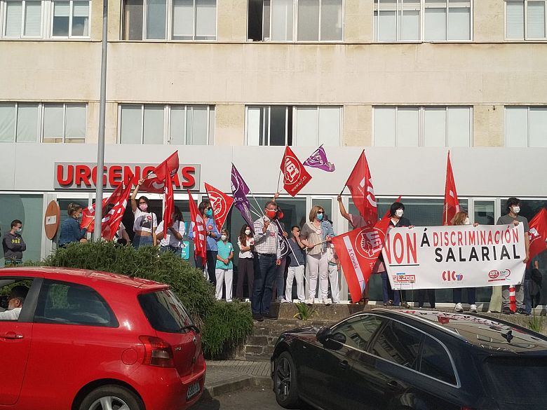 Traballadoras e traballadores do Hospital Quirónsalud (Santa Teresa) da Coruña realizaron este mércores unha manifestación entre a entre a porta principal de acceso ao hospital (na rúa Londres) e a entrada de urxencias (situada na rúa Ginebra), para esixir a fin das discriminacións salariais, unhas condicións de traballo dignas e que a empresa solucione, dunha vez, a sobrecarga de traballo que padece o persoal debido asistencial.