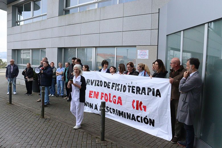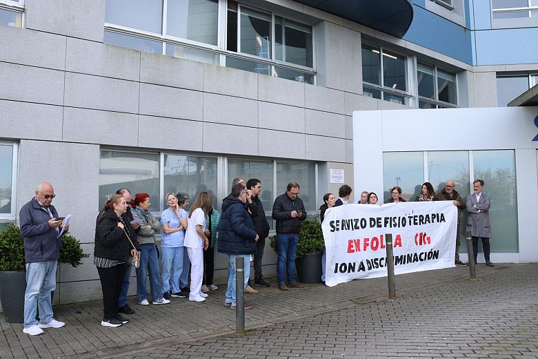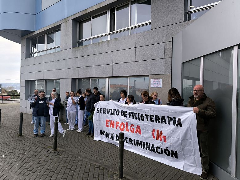 Persoal do servizo de Fisioterapia do Hospital San Rafael da Coruña concentrouse esta mañá para denunciar a discriminación salarial que sofre con respecto a outros colectivos profesionais homologábeis. A protesta, á que tamén se sumaron compañeiras/os doutras áreas e incluso pacientes de rehabilitación, precede á folga que está convocada neste servizo para o próximo día 3 de abril.