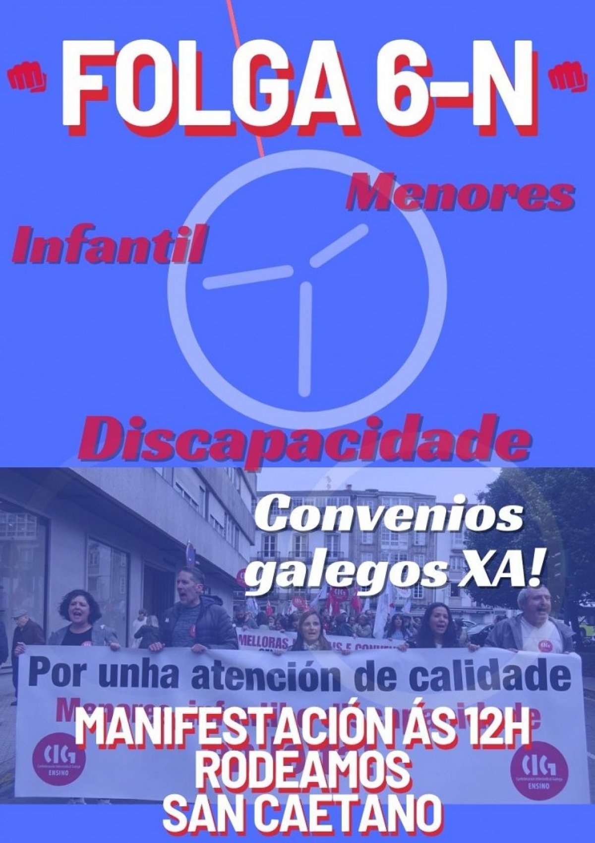 6 de novembro: folga do persoal de discapacidade, protección de menores e infantil 0-3 por convenios dignos