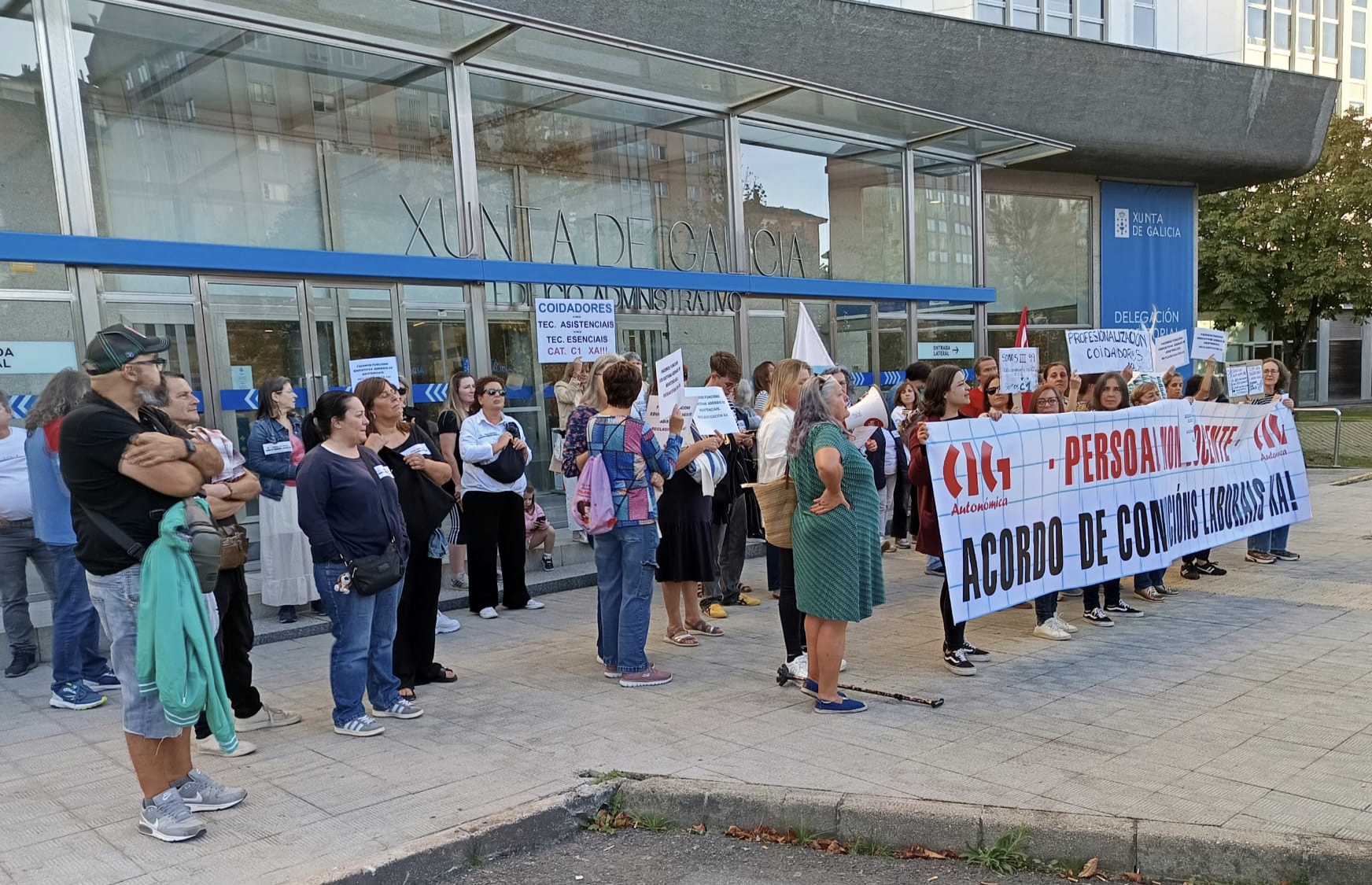 Por outra parte a falta de negociación das condicións laborais deixa ao persoal coidador, limpador, interprete de signos, persoal das cociñas, conserxe e administrativo, “como o último grande colectivo de traballadores e traballadoras da Administración Autonómica sen un acordo de condicións de traballo e sen ter sequera unha mesa de interlocución para a negociacións das cuestións que lles afectan”.
