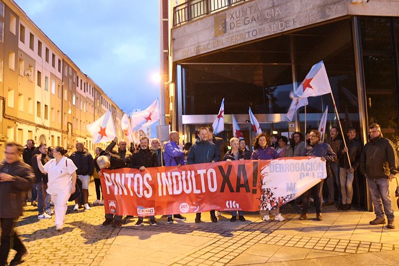 Dentro do calendario de mobilizacións para reclamar a concesión do indulto ao compañeiro e ex secretario comarcal da CIG de Ferrol, Xesús Anxo López Pintos, as organizacións sindicais CIG, CCOO, UGT e CGT realizaron unha nova concentración esta tarde en Ferrol diante do edificio administrativo da Xunta de Galiza.