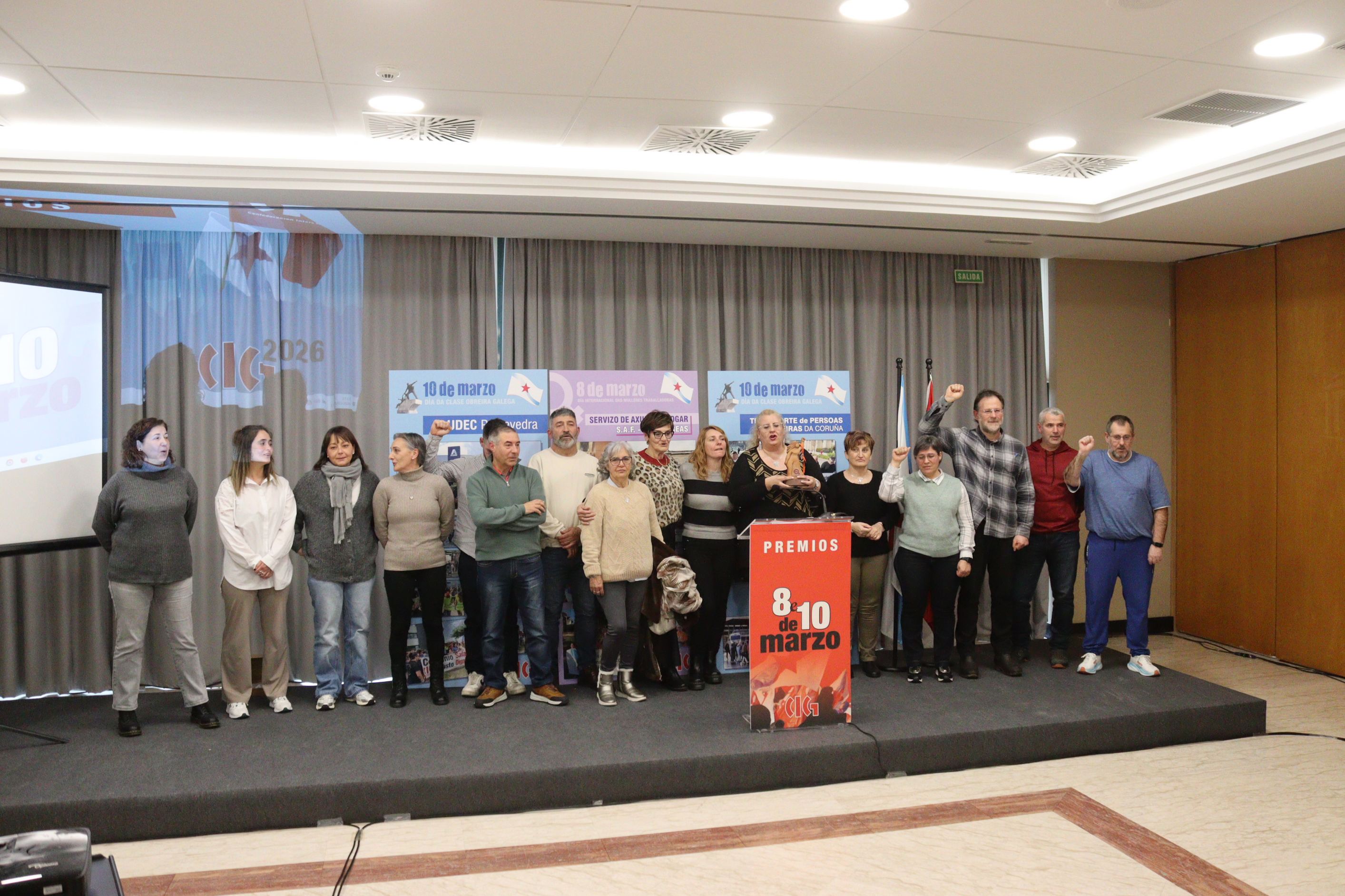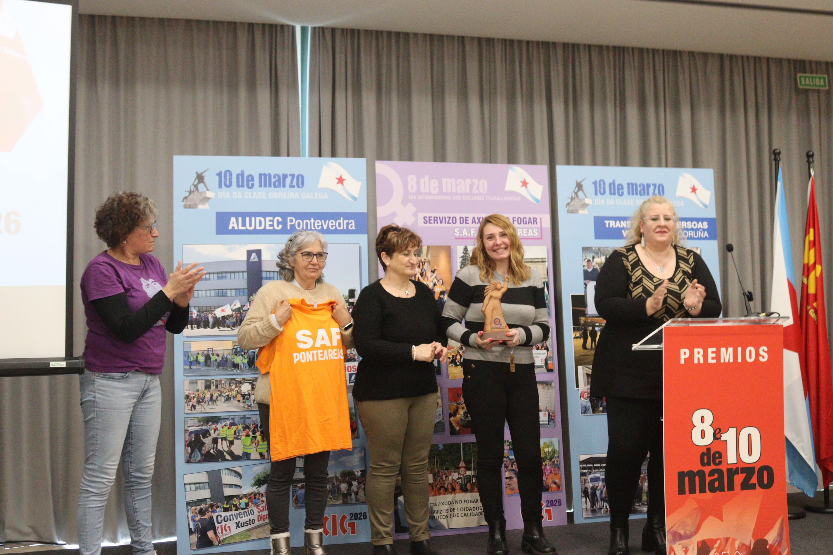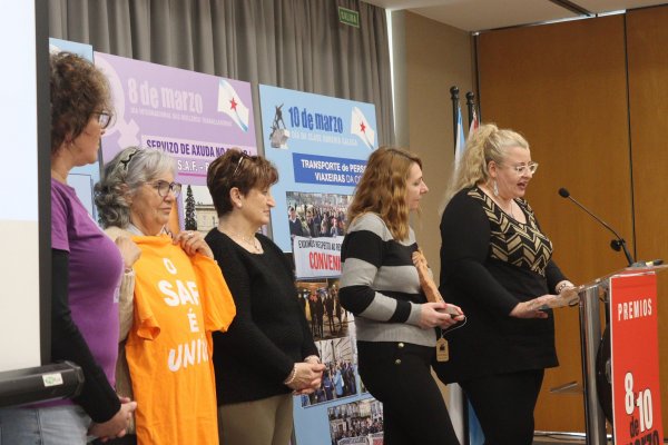 A CIG recoñeceu este venres co ‘Premio 8 de Marzo’ ás compañeiras do SAF de Ponteareas pola súa exemplar loita pola dignificación do traballo dos coidados fronte a un modelo de xestión externalizado e sometido a unha licitación a baixo custo que comprometía os dereitos laborais e a calidade da atención ás persoas usuarias.