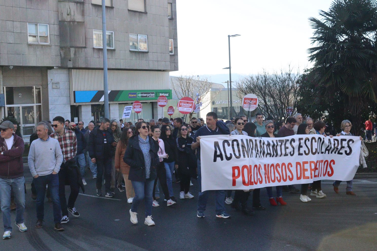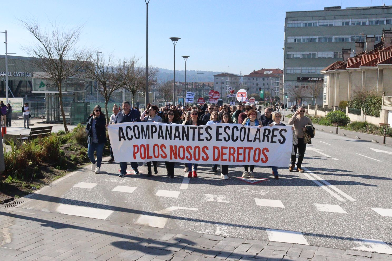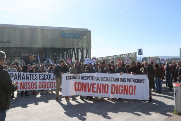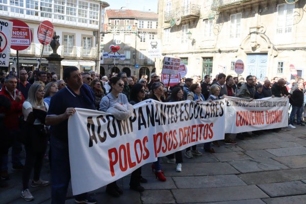 Na manifestación deste domingo, o persoal acompañante do transporte escolar portaba tamén a súa propia faixa demandado avances nas condicións de traballo, altamente precarizadas e que aínda empeoran con este acordo, tal e como denunciou, Nieves Paz, ao remate da protesta.