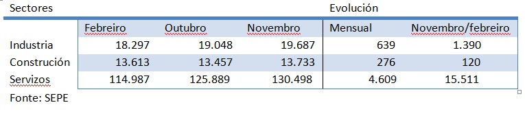 A nivel sectorial, a evolución e como segue:
