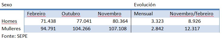 A pesar desta evolución, rexistráronse 61.311 contratos nas oficinas do SEPE ( 8,4% indefinidos), o que manifesta a alta rotación e escasa duración dos contratos dunha parte importante da poboación asalariadas galega, o que se traduce en precariedade, temporalidade e baixos salarios.