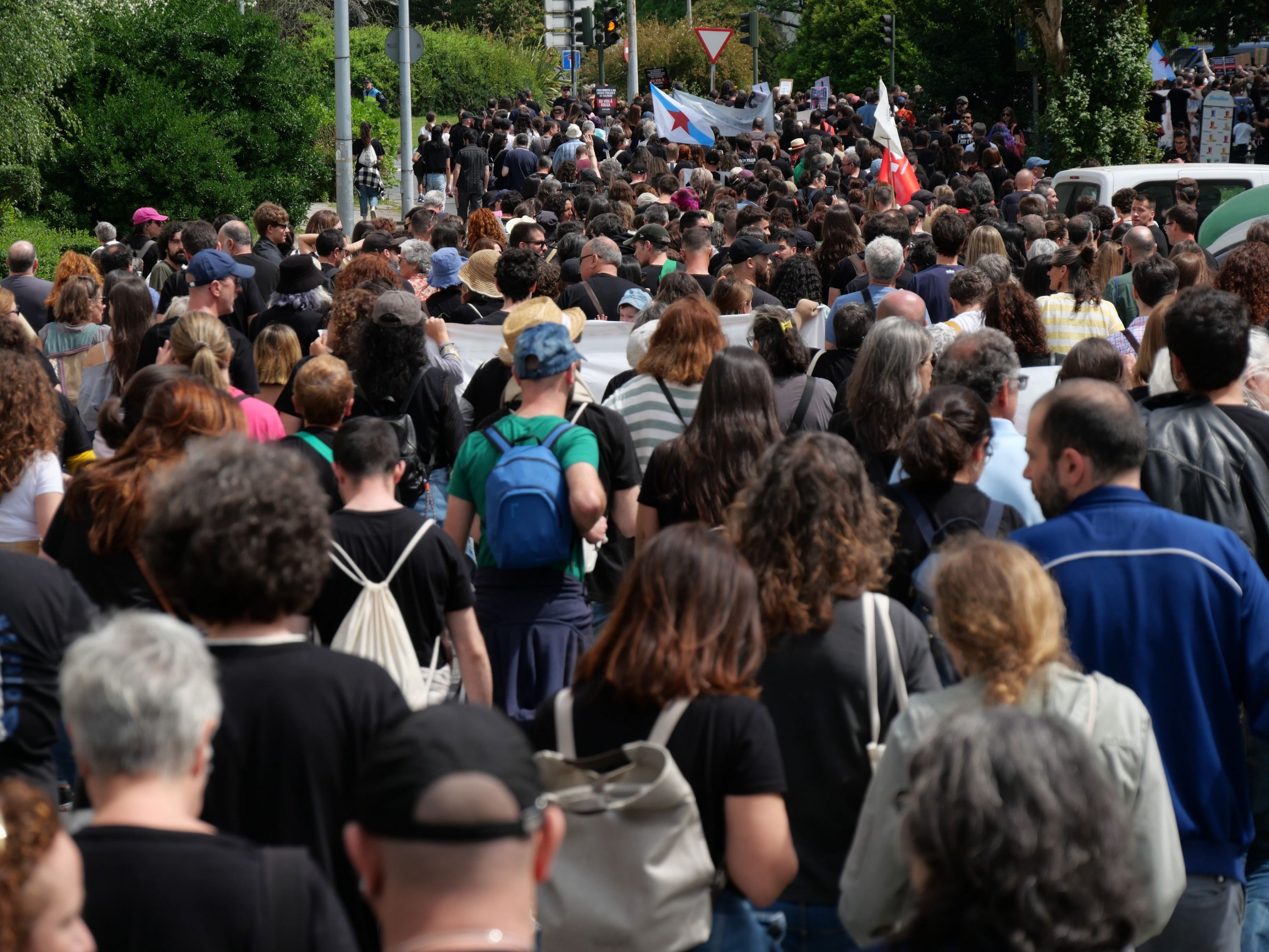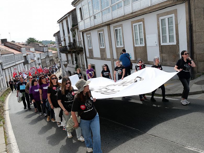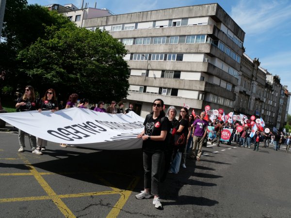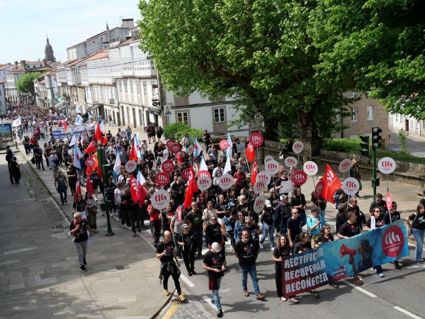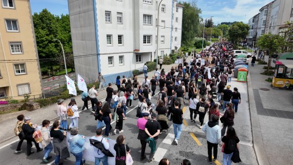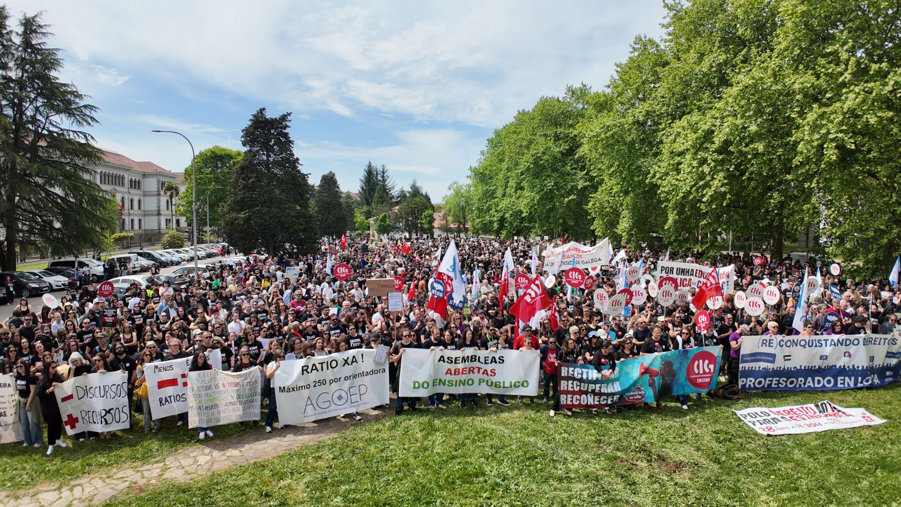 "Estamos fartas de fotos e de propaganda por parte da Consellaría de Educación e mais do sindicatos que asinan ese acordos de vergoña. Queremos melloras reais e concretas e que comecen a aplicarse xa o curso que vén". A secretaria nacional da CIG-Ensino, Laura Arroxo, realizaba estas declaracións ao inicio da manifestación que, baixo o lema “recuperar e avanzar en dereitos”, este martes reuniu a máis de 5.000 persoas na capital galega, maioritariamente docentes, pero tamén alumnado e familias.