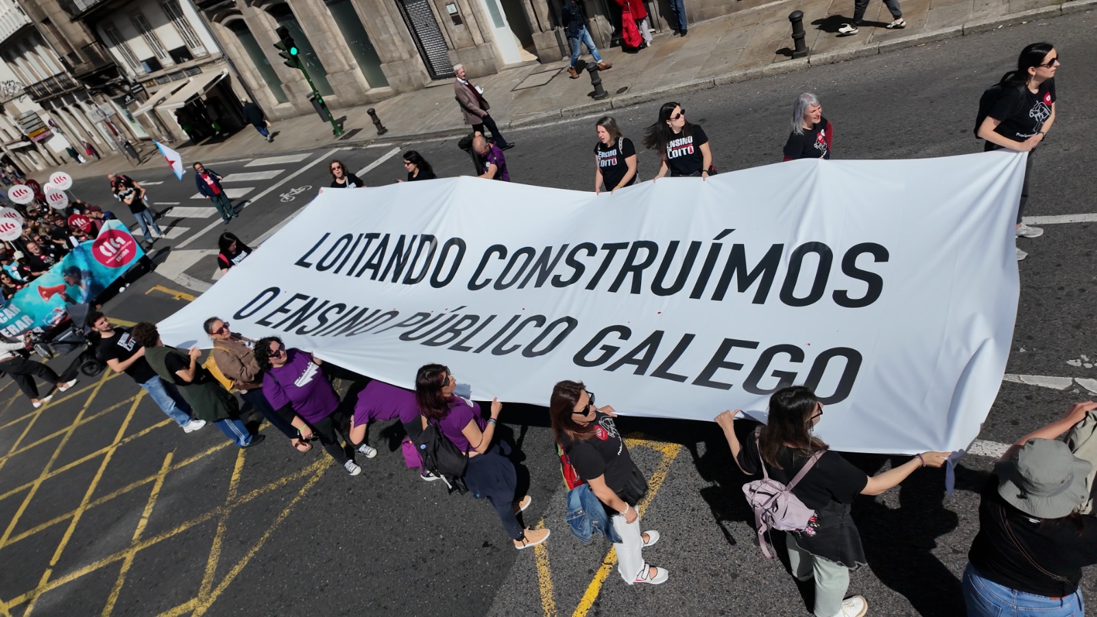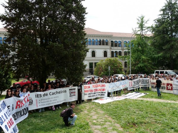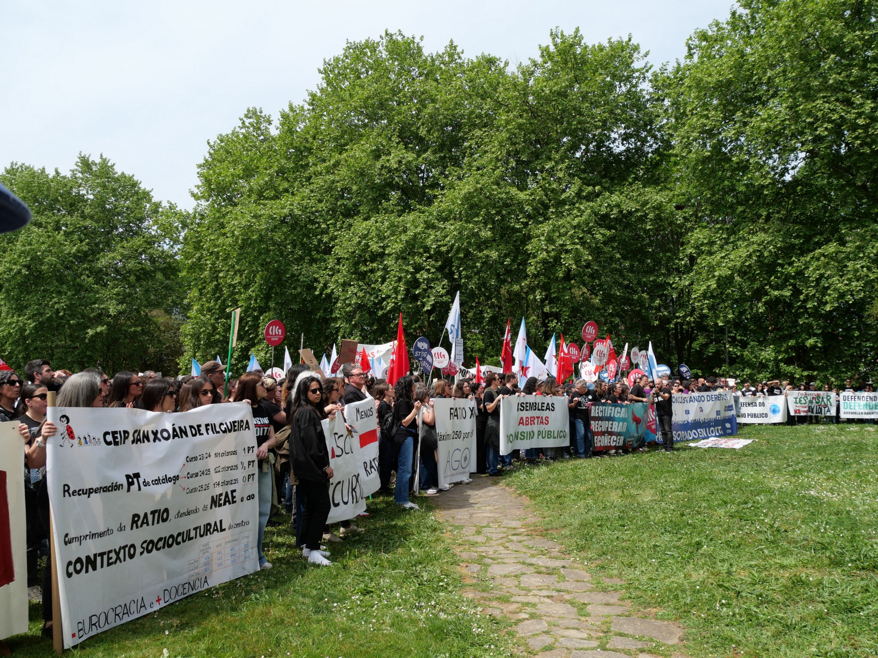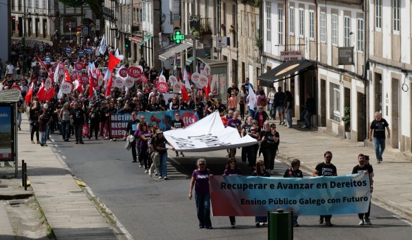A mobilización desenvolveuse no marco da nova xornada de folga convocada en todo o ensino non universitario e rematou diante do complexo administrativo da Xunta en San Caetano coa lectura dun manifesto a cargo de sete docentes que representan os distintos colectivos e ensinanzas. Coa de hoxe, son xa seis as xornadas de folga que secunda o profesorado dende que comezou o curso actual, despois de 16 anos de recortes aplicados polo Goberno do PP.