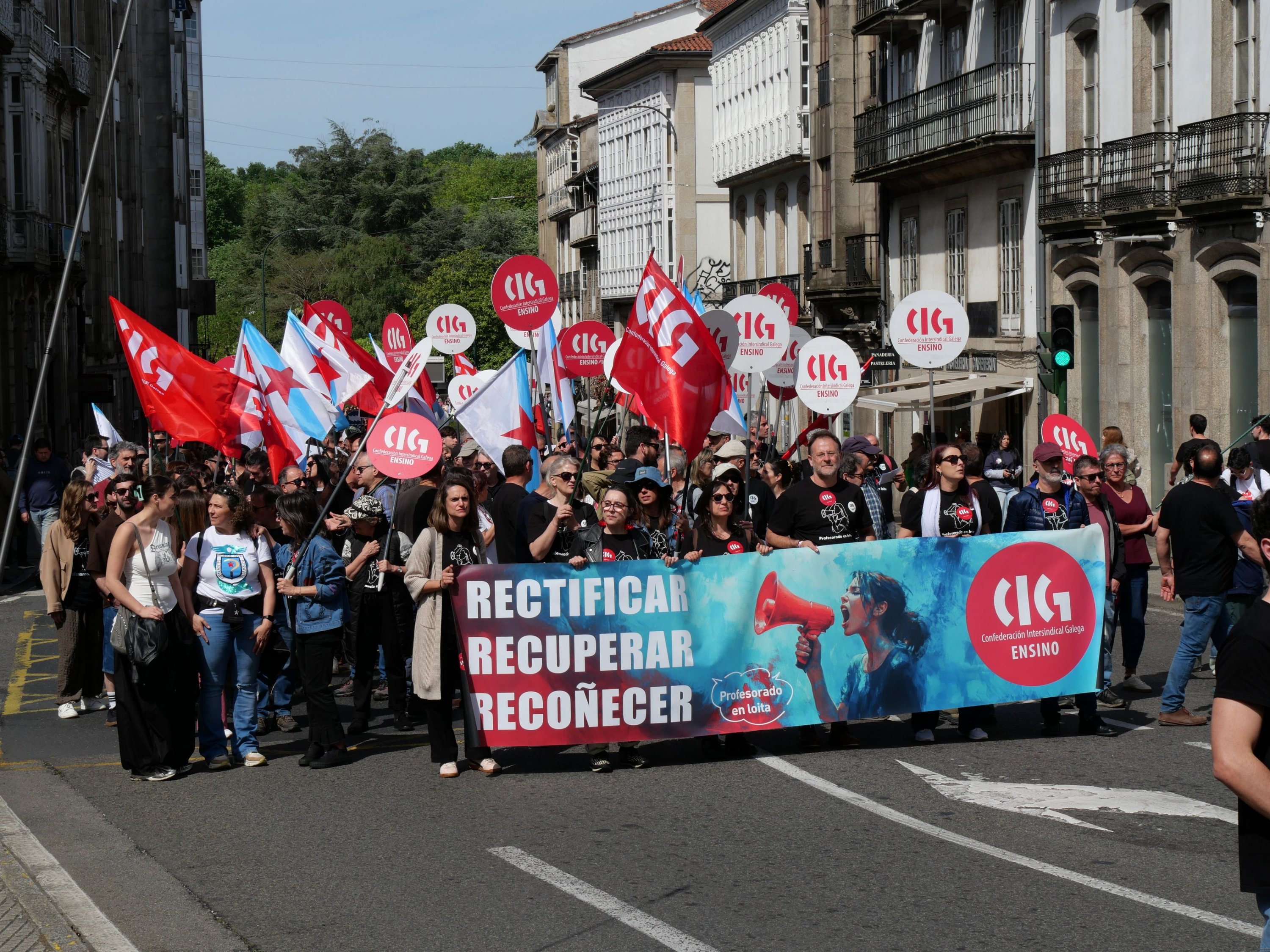 A secretaria nacional da CIG-Ensino aproveitou para lanzar un chamado a toda a comunidade educativa a participar nas mobilizacións convocadas na tarde do 6 de maio, ás 19h, en máis dunha vintena de localidades para exixir un sistema de calidade, porque este “non é só un problema laboral, senón de todo o ensino público galego”.