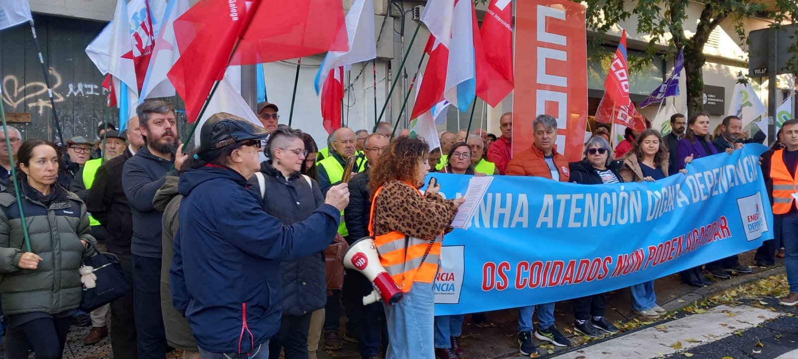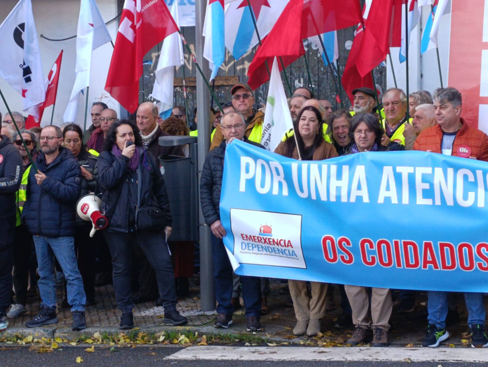 Ducias de persoas concentráronse este luns ás portas do Pazo do Hórreo para reclamar políticas públicas xustas e unha atención digna ás persoas dependentes. A protesta, convocada pola Plataforma Emerxencia Dependencia (da que a CIG fai parte), coincidiu co debate da totalidade dos orzamentos xerais de Galiza para 2026 no parlamento galego.