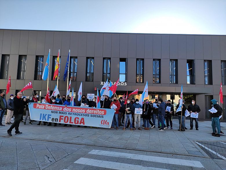 A CIG desenvolveu hoxe unha concentración diante dos xulgados de Tui en apoio dos tres afiliados da central denunciados polo delegado de CCOO en IKF, empresa da Guarda que viviu un longo conflito no marco das negociacións do pacto laboral. A raíz da demanda abriuse un proceso penal por supostas ameazas por parte dun representante da CIG no comité de IKF e por supostas inxurias doutro traballador da empresa e dun membro da Unión local do Baixo Miño.