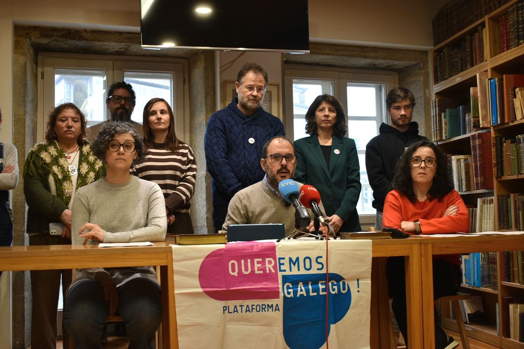 Neste sentido, o voceiro de Queremos Galego lembrou a eliminación do coñecemento de galego para entrar nas listaxes de contratación pública, a posibilidade de que a TVG deixe de usar o idioma de Galiza, o boicot de Rueda á oficialidade do galego na UE, a oposición á entrada de Galiza na UNESCO, a lei de IA que exclúe a lingua, a supresión nos pregos dos campamentos de verán, o uso do castelán en campañas para a mocidade, a falta de recursos para a tradución ao galego de programas como Atenea e o desinvestimento en accións normalizadoras nos centros educativos ou o control do IGE, "para evitar que os datos poñan en evidencia a realidade lingüística ou social de Galiza".